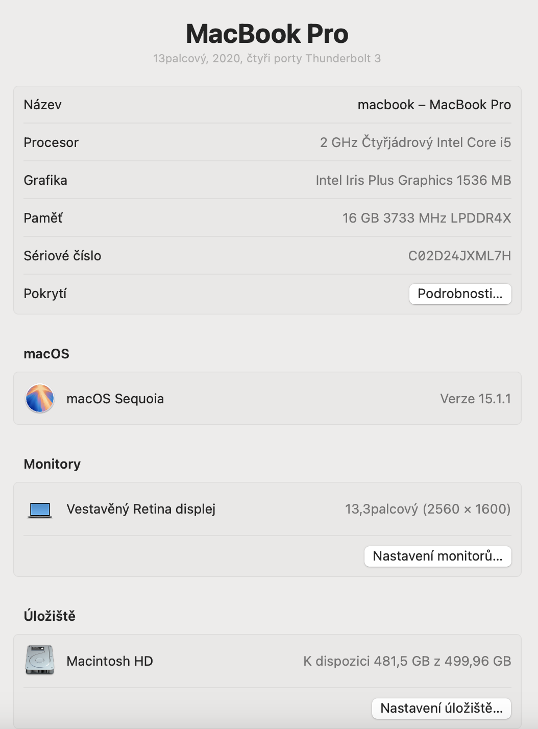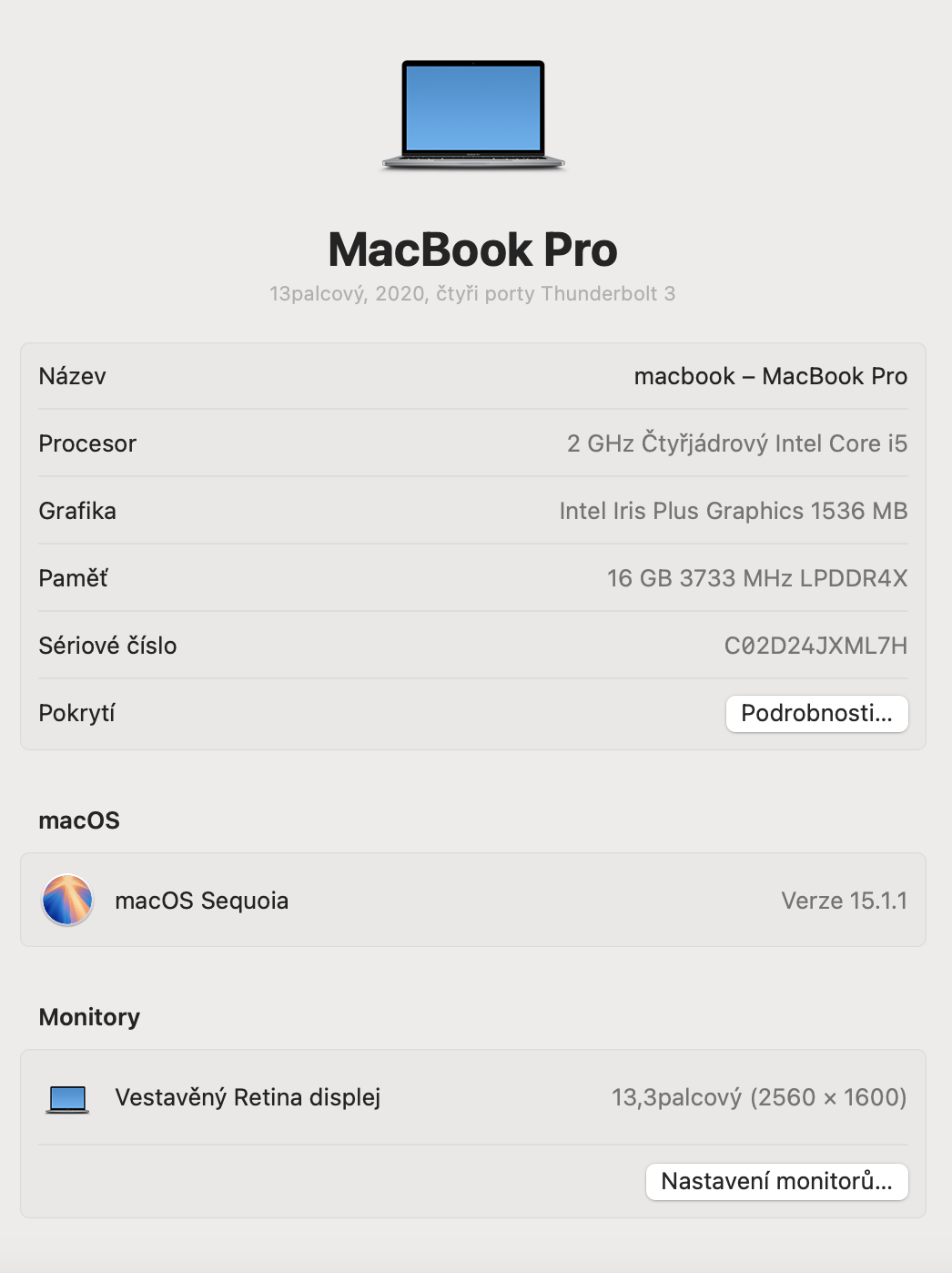 Macbook má příplatkovou RAM, SSD, procesor. Na Macbook poskytnu záruku 10 měsíců.