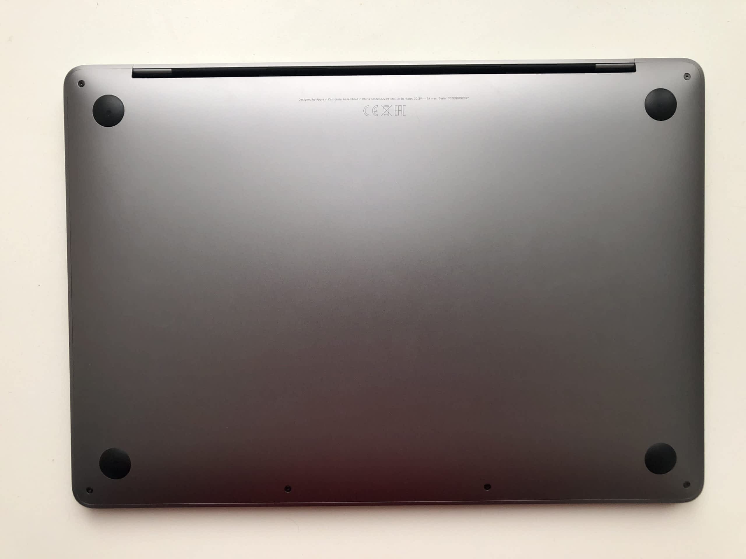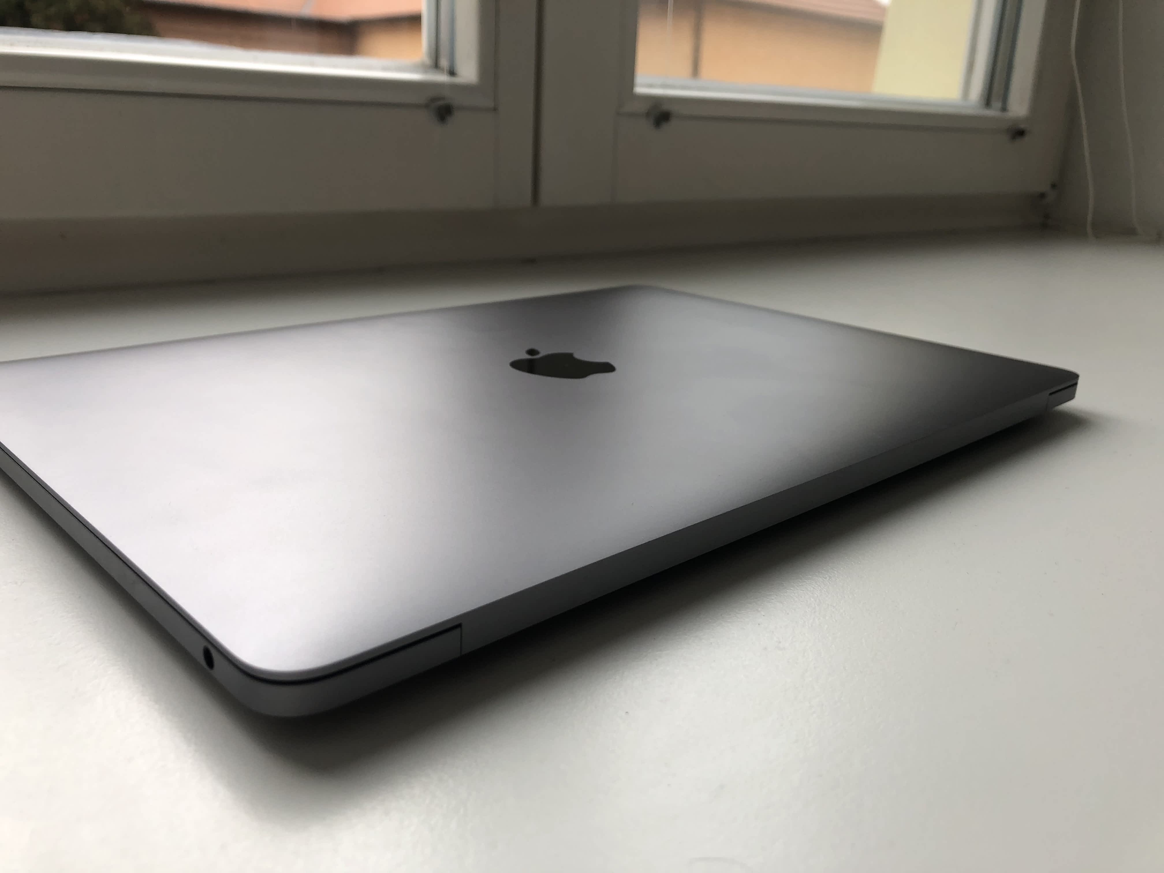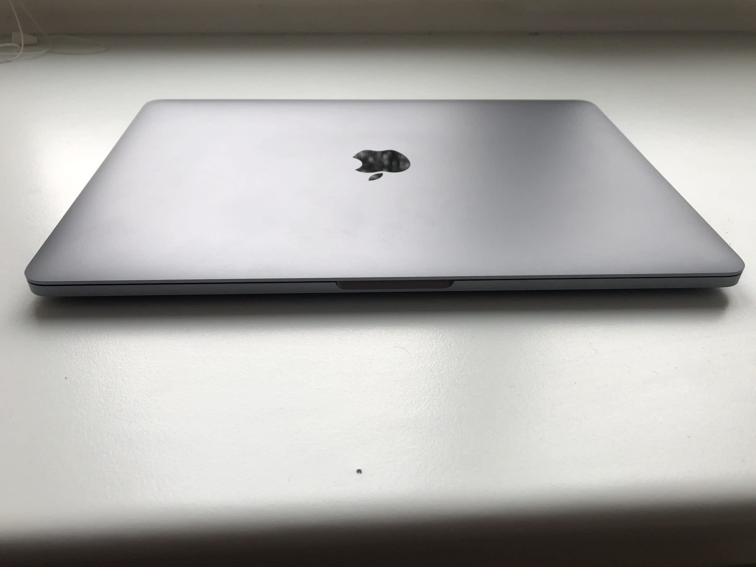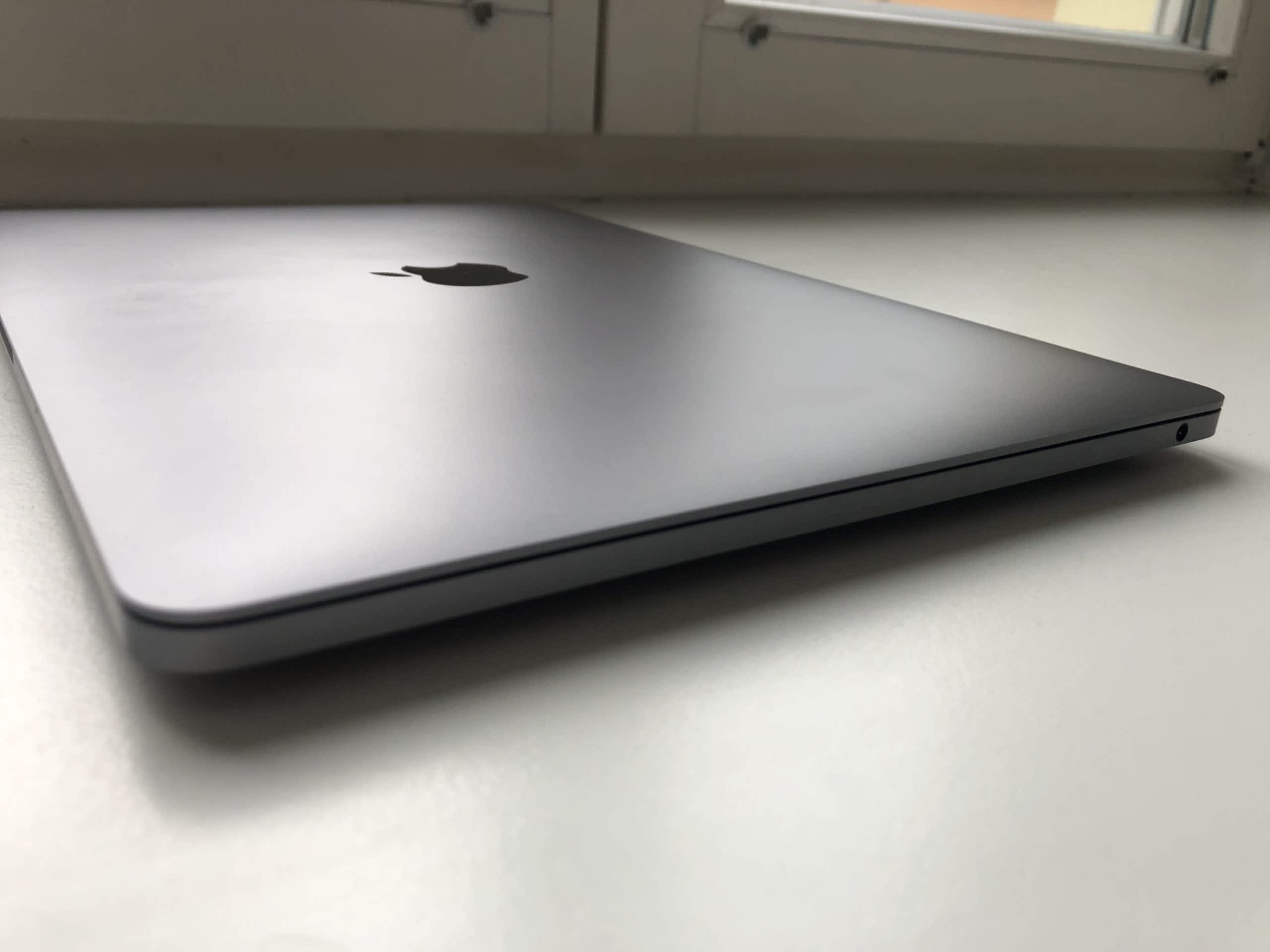 MacBook používán pro běžnou kancelářskou práci, přenášen v pouzdře. Na spodní straně dvě malá škrábnutí viditelná pouze pod určitým úhlem (viz foto), jinak bez poškození.
