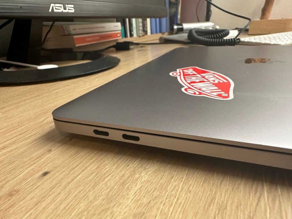 Optické vady: menší škrábanec v pravém spodním rohu, viz fotu; je viditelná samolepka. UV záření je svině 🙂 Originální nabíječka v ceně + usb c rozbočívat na HDMI a dvě usb
