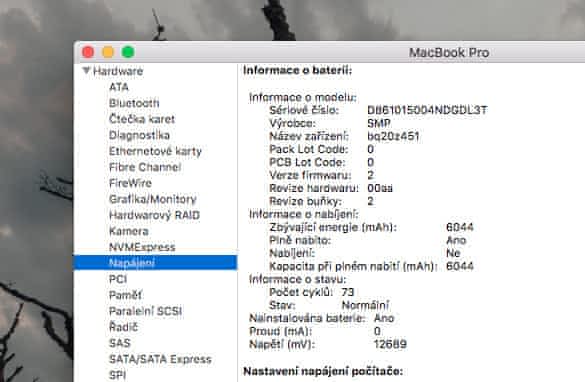 16GB RAM, nahrazení CD-ROMky za SSD disk – takže 750GB HDD a 250GB SSD. Nedávno nová baterie – počet cyklů 73(viz. screenshot)! Vše funguje v naprostém pořádku, žádné škrábance nebo rozbití (pouze na spodní straně jsou drobné vlásenkové odřeniny od běžného používání). Jediný důvod prodeje je nemožnost aktualizovat na novější MacOS a tím pádem nelze aktualizovat Lightroom (program na úpravu fotek). Pokud nepotřebujete střihat video nebo upravovat fotky tak bude sloužit ještě hodně dlouho!