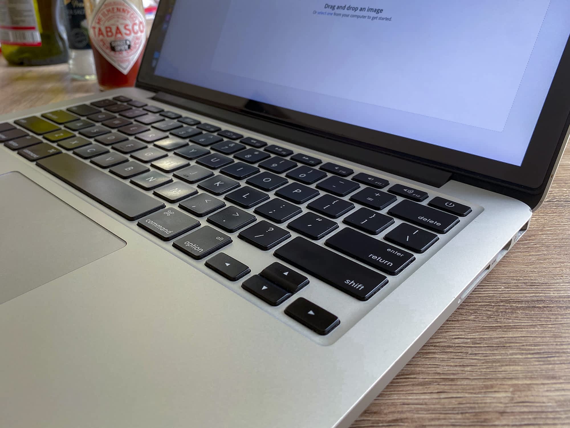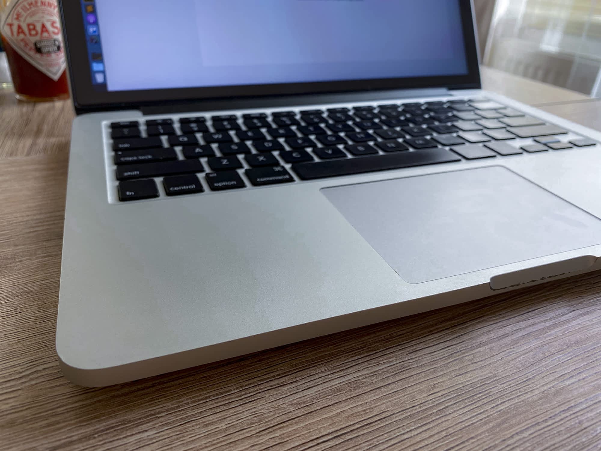 Vyměnil jsem v něm téměř vše (klávesnici, základní desku, displej, porty, trackpad, teplovodivou pastu, baterii s méně než 100 cykly) a teď je v naprosto vymazleném stavu. Displej netrpí Staingate, kdy se začala oprýskávat antireflexní vrstva, kvůli čemu se na Retina displejích u těchto modelů tvořily šmouhy – mám na displeji ochranné sklo.