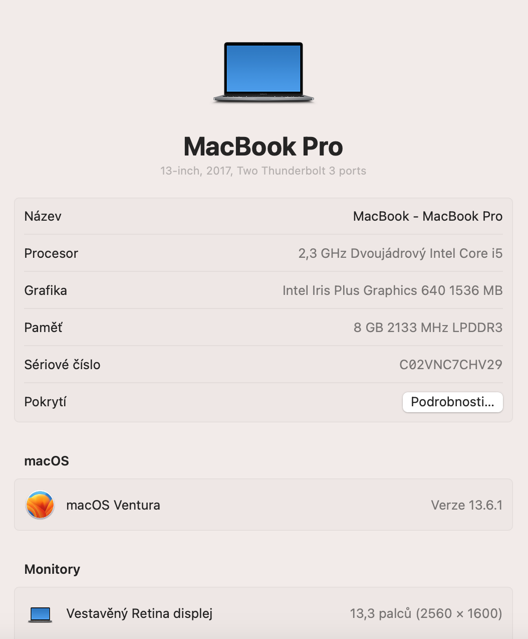 Procesor: 2.3GHz dvoujádrový Intel Core i5