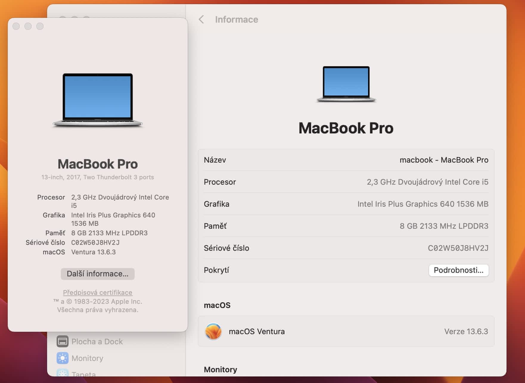 Procesor: 2.3GHz dvoujádrový Intel Core i5