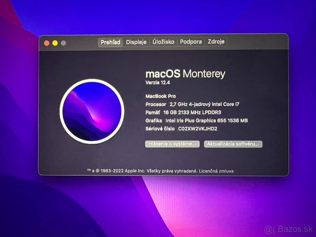 Predám v zachovalom stave MacBook PRO 13 s procesorom Intel i7 2,7 GHz.