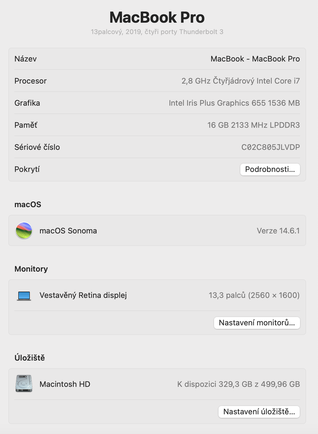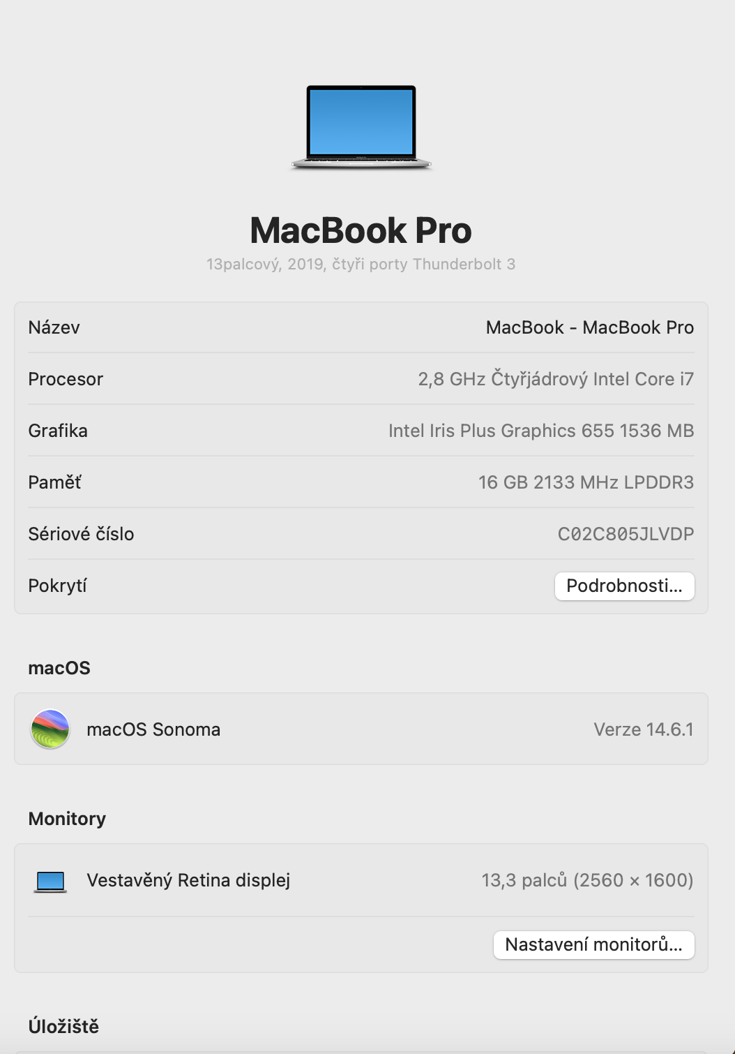 Macbook má příplatkou RAM, SSD, lepší procesor. Minulý měsíc byl měněný display – dělal už neplechu.