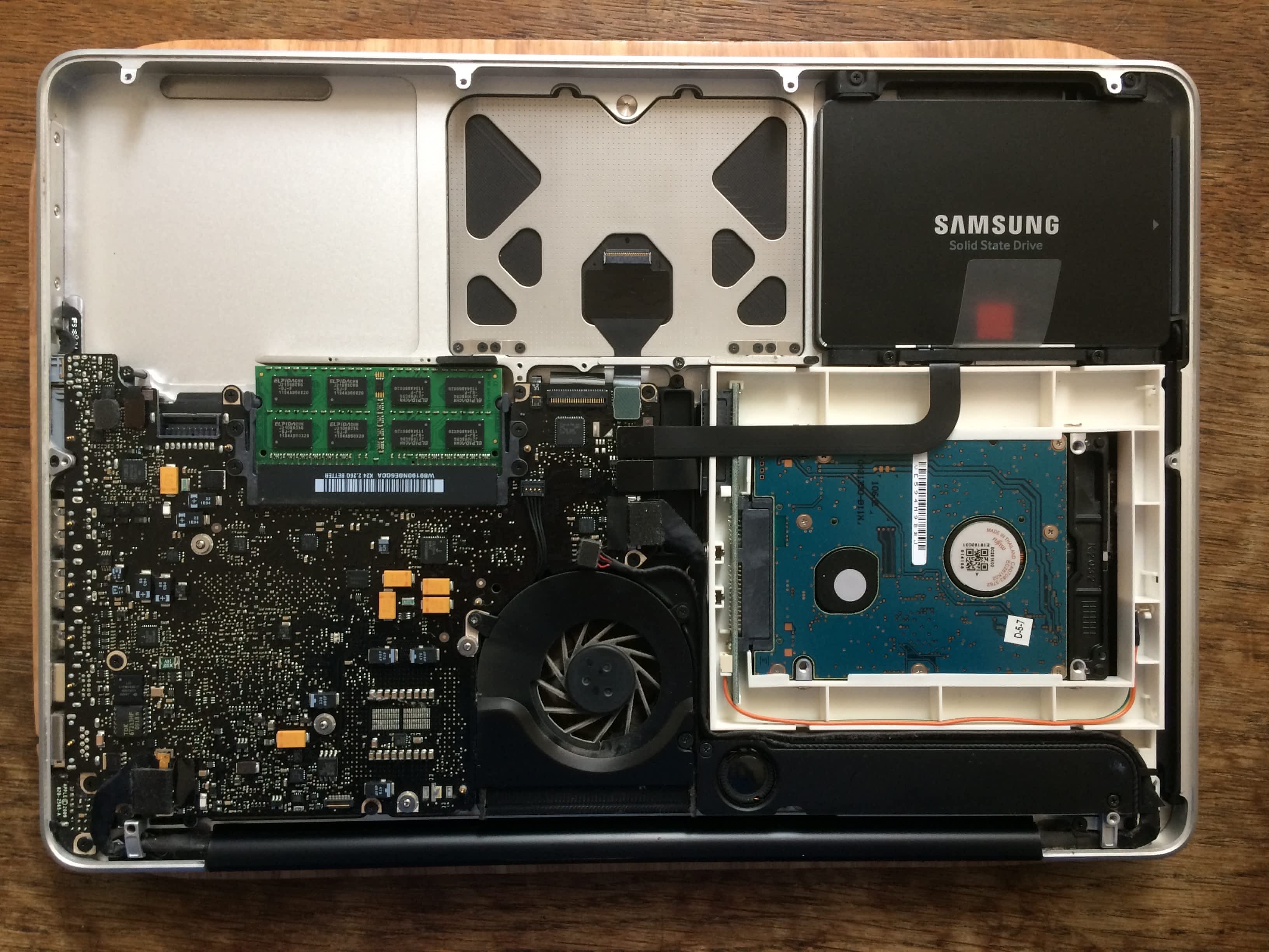 Během těch let jsem přikoupil RAM na stávajících 8 GB RAM a disk vyměnil za 256 GB SSD (Samsung SSD 850 PRO). Původní disk jsem vložil do šuplíku namísto optické mechaniky (nebojte je přibalena).