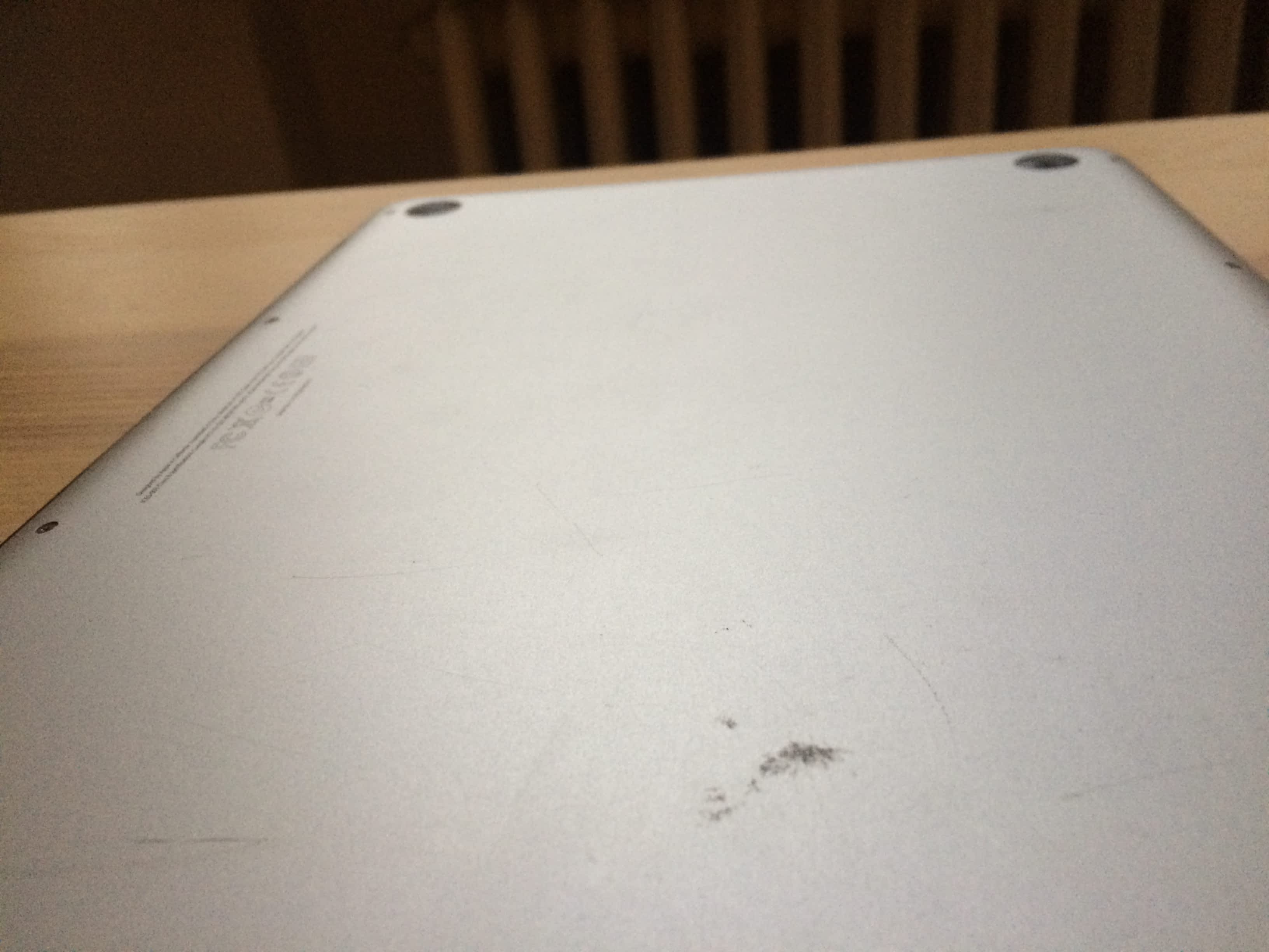 Lehce odřený zespodu (viz foto), baterie 765 cyklů – vydrží cca 4-5 hodin.