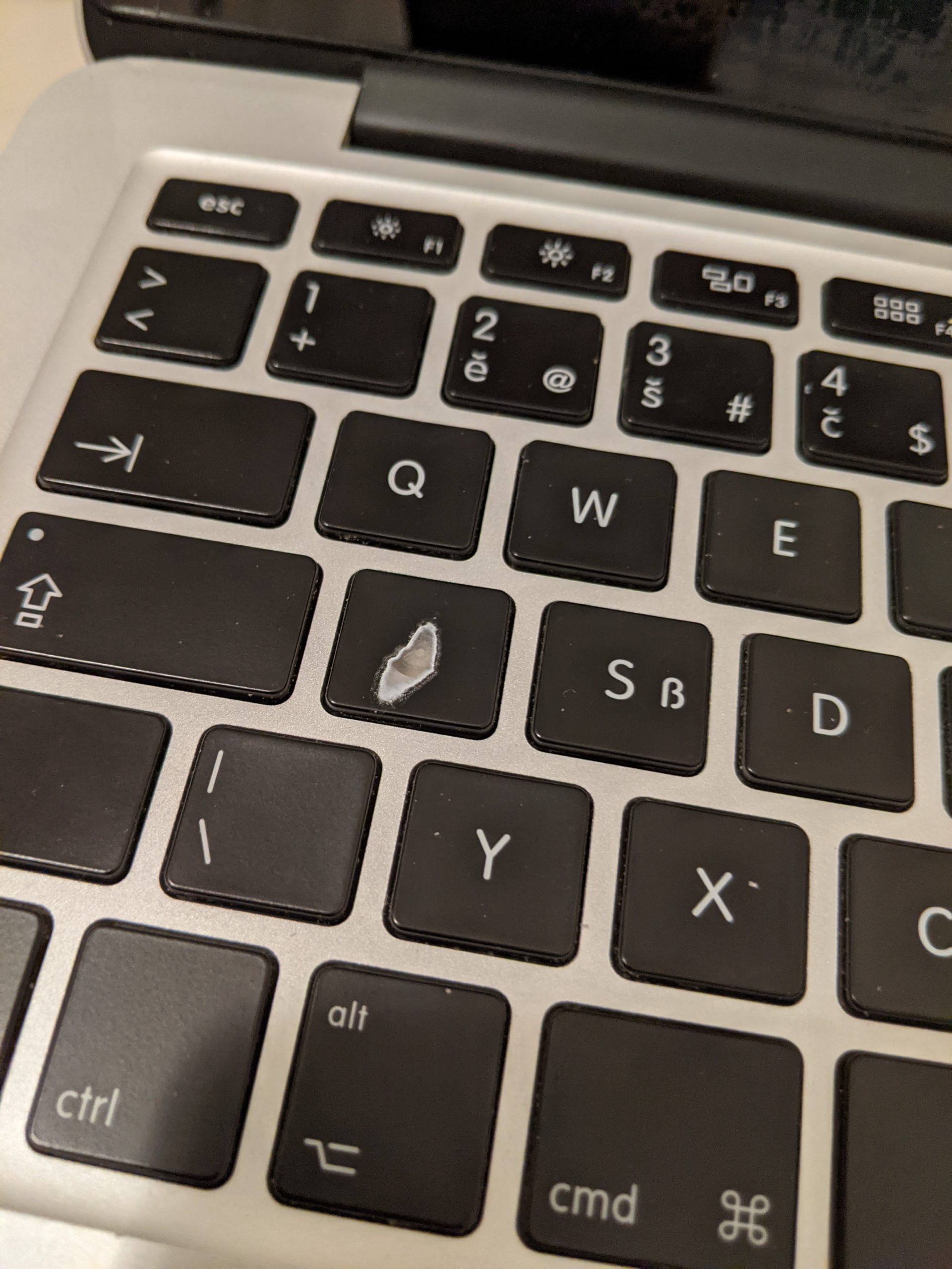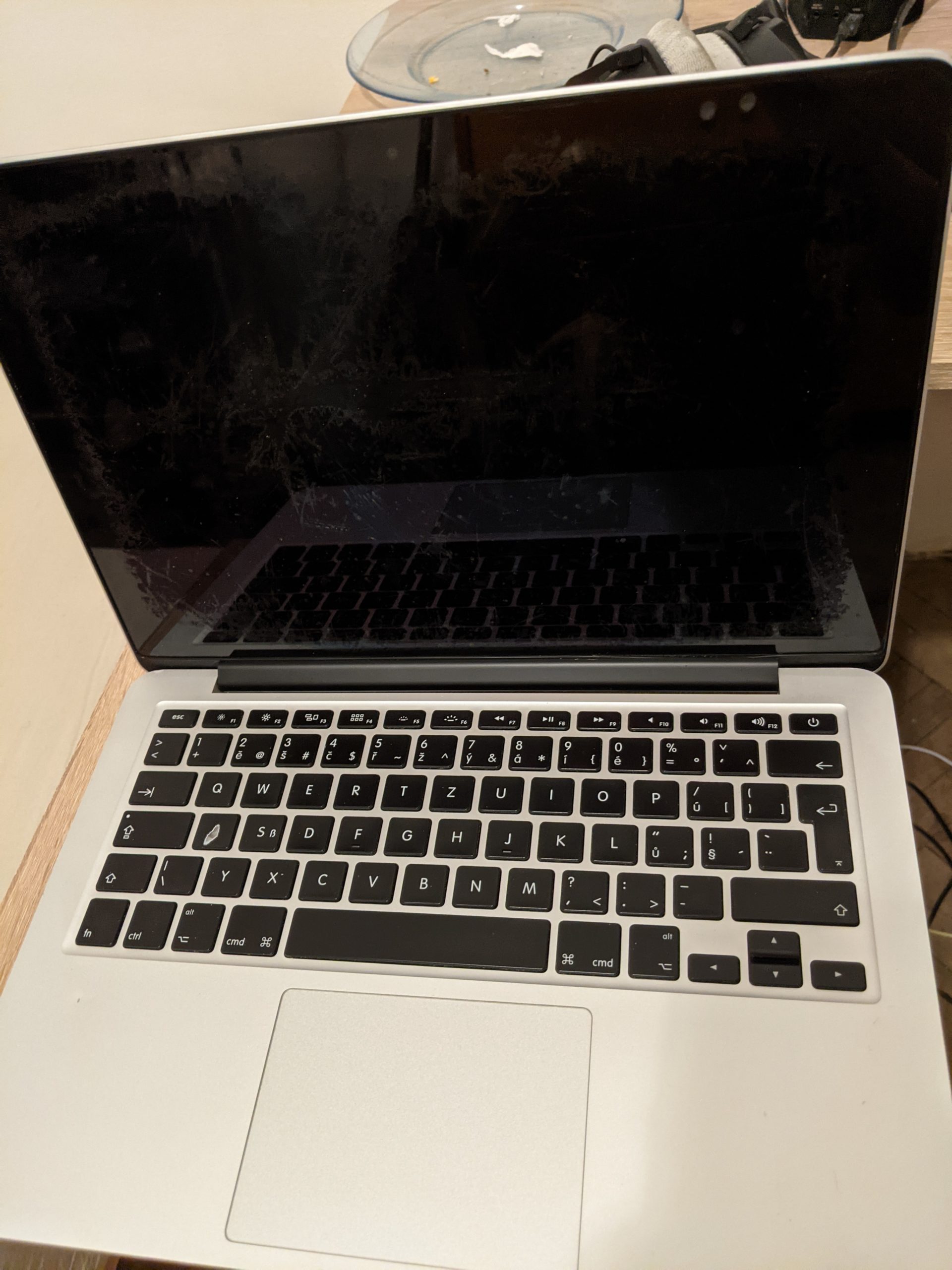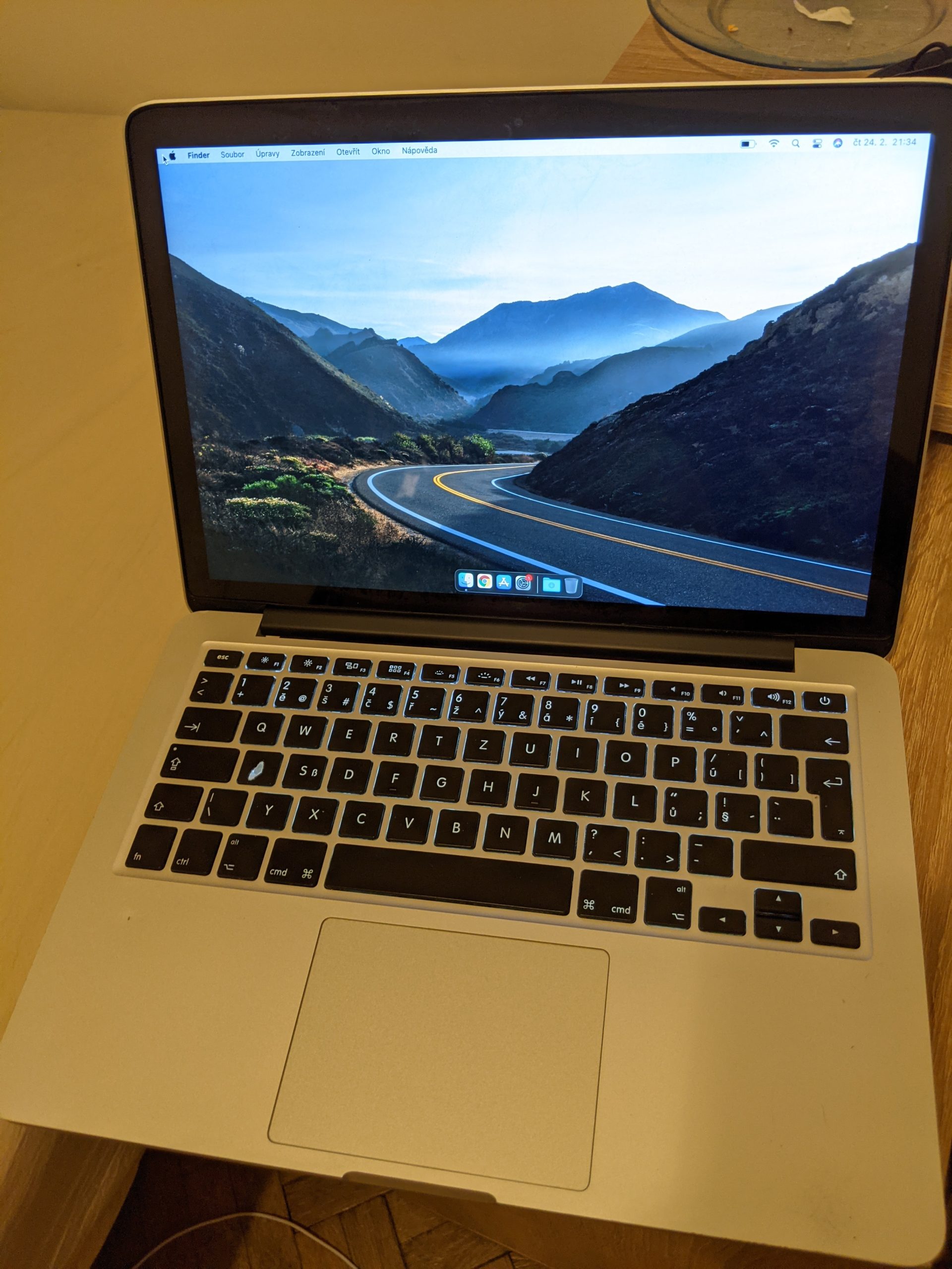 Macbook funguje skvěle, pouze má sloupanou antireflexní vrstvu, což při používání není v podstatě znát, potom sedřený znak z klávesy A, na víku je lehce ťuknutý a chybí mu dvě protiskluzové podložky. Nabíječka součástí. Osobní předání Praha.