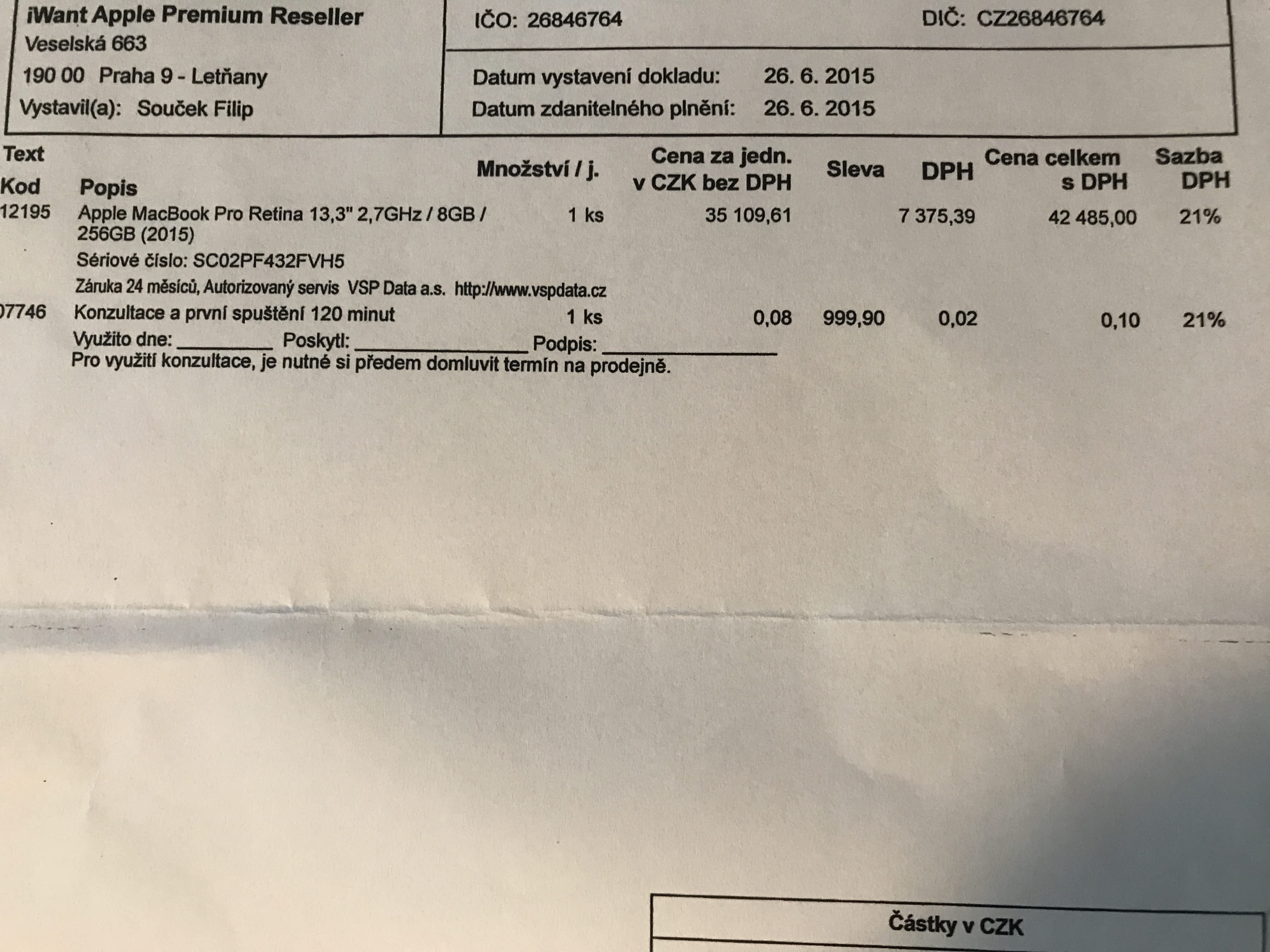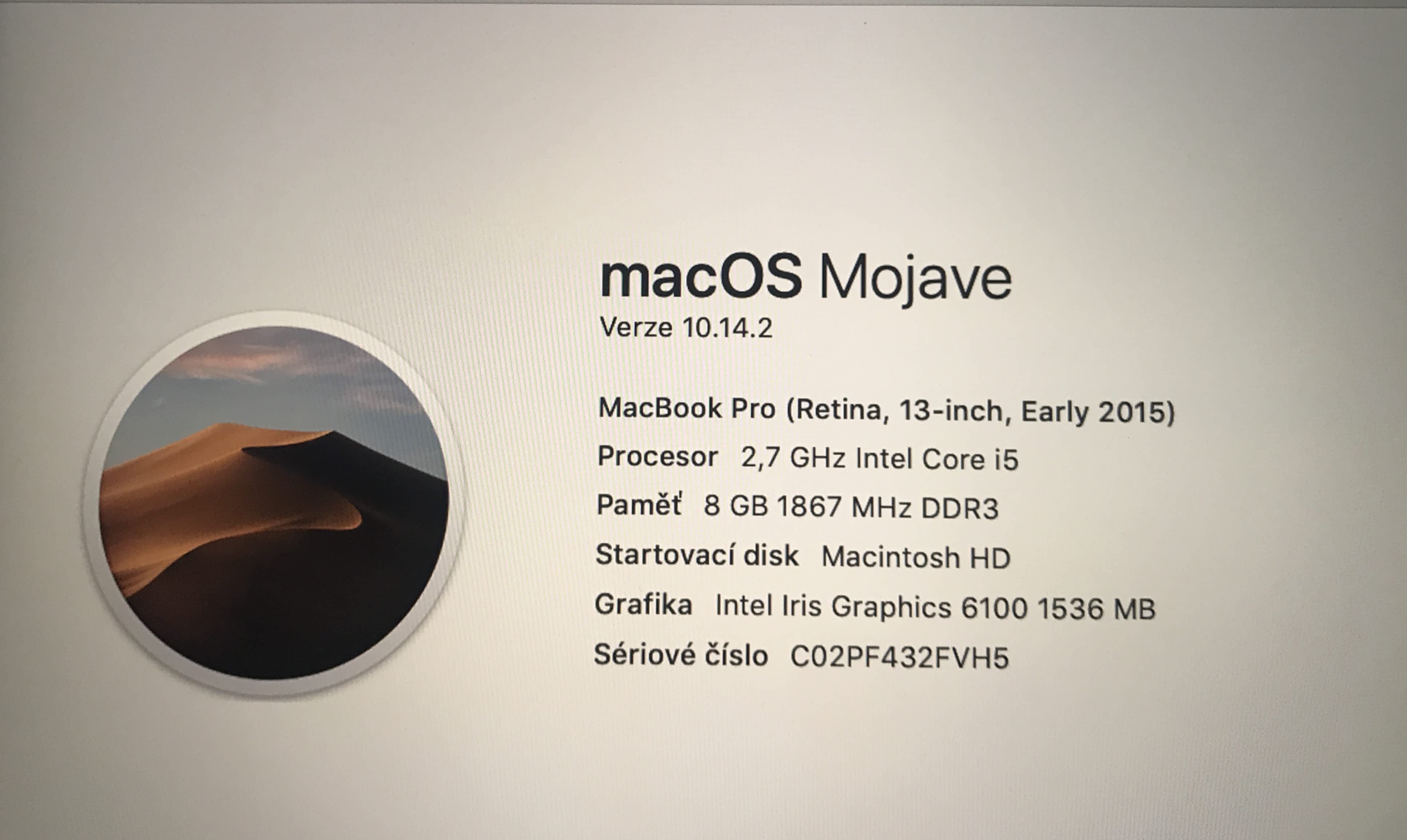 256GB , 8GB RAM , Intel i5 , kupováno iWant jaro 2015 , bez oděrek , v rámci svolávací akce Apple vyměněn displej a vyčištěn ,
