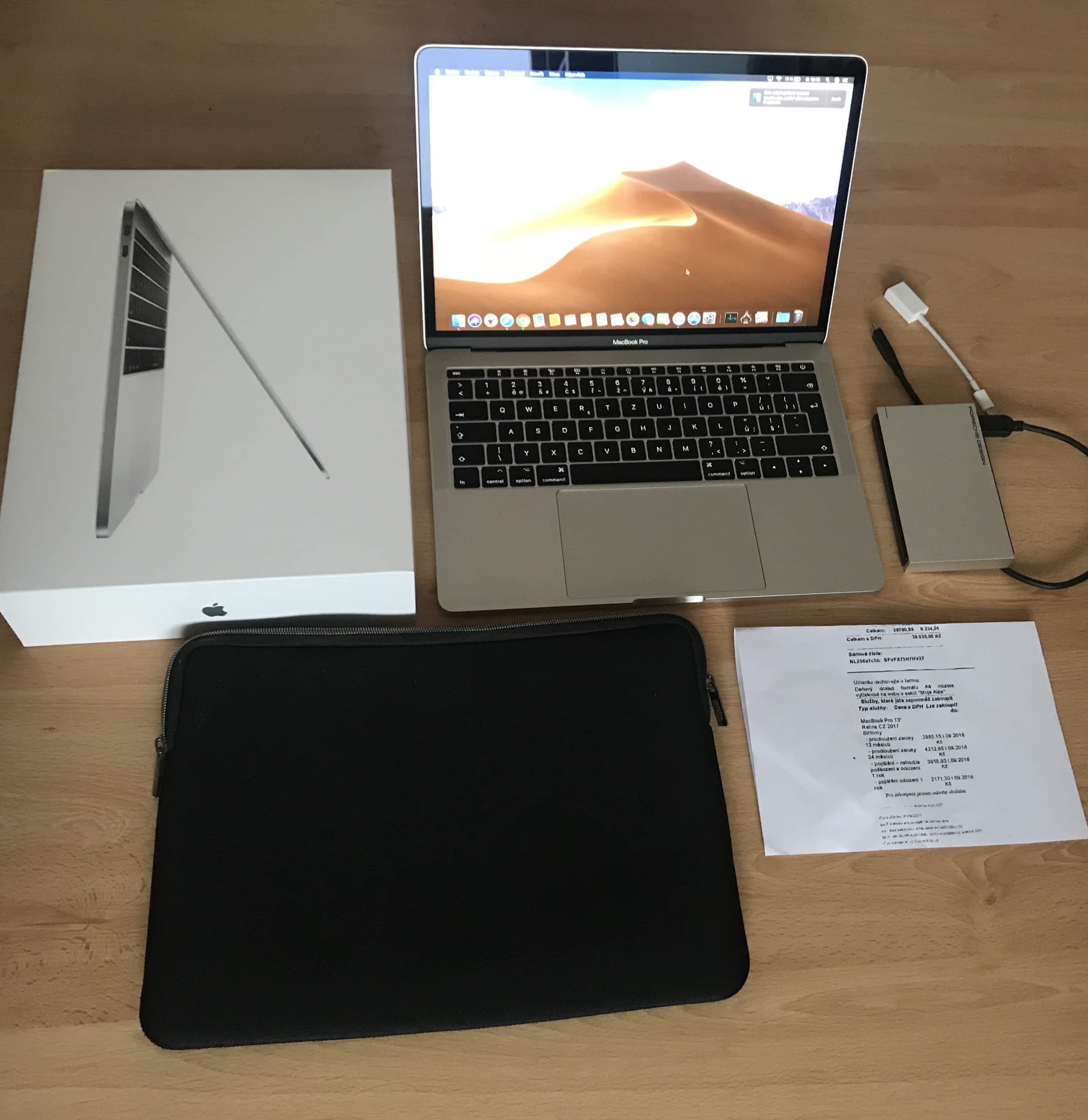 Ahoj, rád bych prodal svůj MacBook Pro 13" Retina CZ 2017 Stříbrný kupovaný na Alza.cz ( pc 35 990,- ), starý 3 měsíce, tudíž stále v záruce. Bez jakýchkoli vad, škárbanců, ťukanců, je jako nový!! Počet cyklů baterie 35.