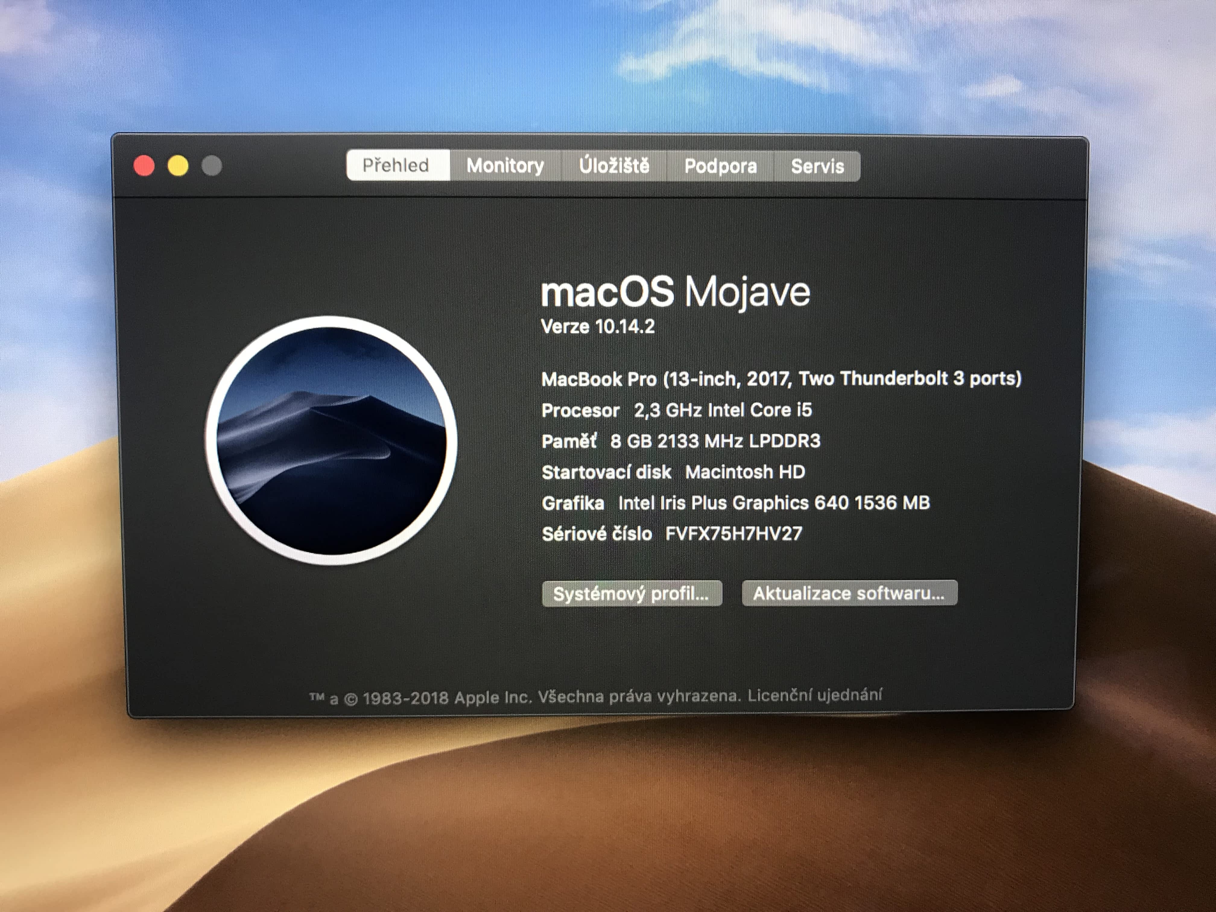 Ahoj, rád bych prodal svůj MacBook Pro 13" Retina CZ 2017 Stříbrný kupovaný na Alza.cz ( pc 35 990,- ), starý 3 měsíce, tudíž stále v záruce. Bez jakýchkoli vad, škárbanců, ťukanců, je jako nový!! Počet cyklů baterie 35.