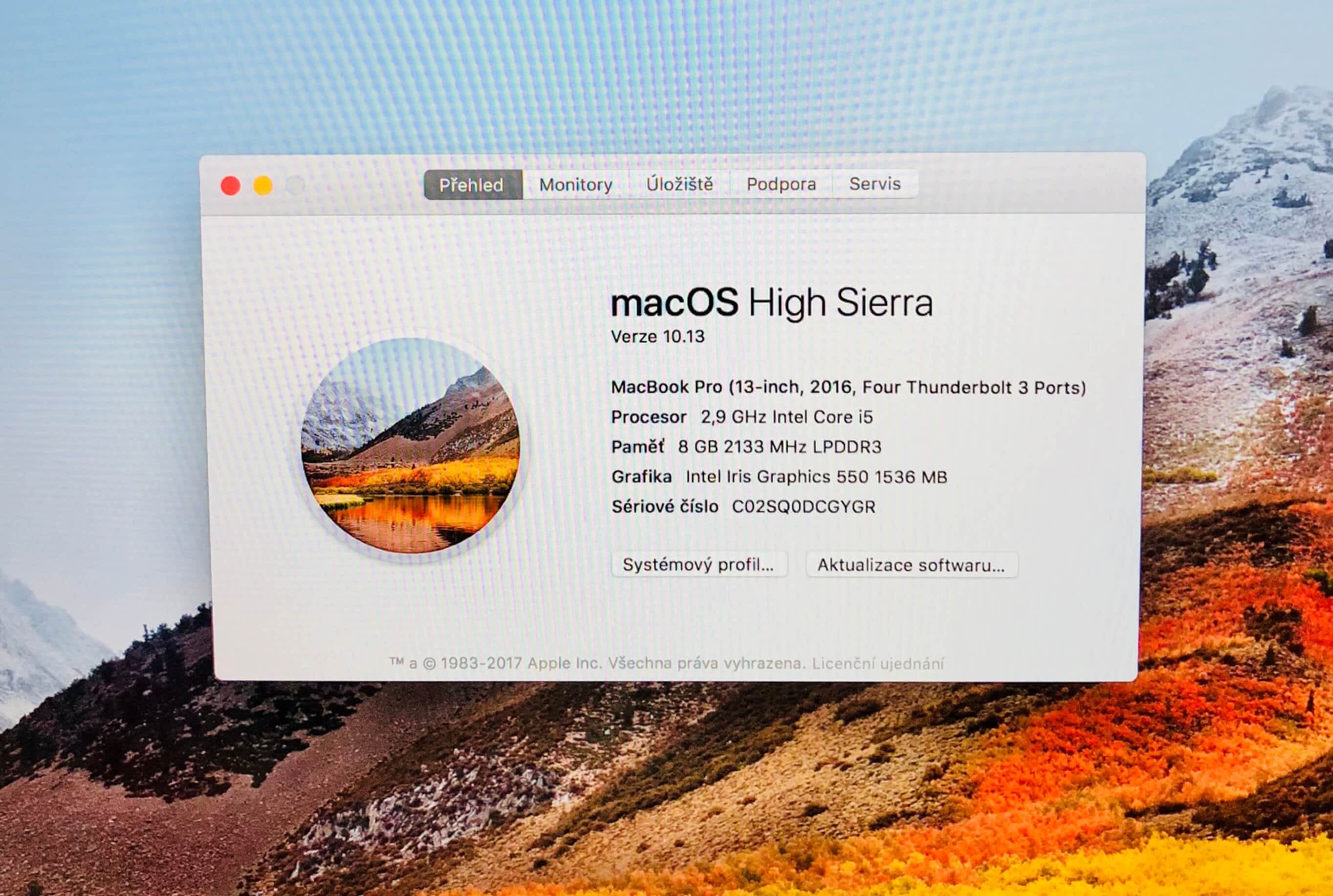Prodám Macbook Pro 13 Touch Bar, i5, rok 2016, 8GB RAM, 256GB SSD se zárukou a možnosti osobního odběru v Praze, nebo po domluvě odeslání na dobírku Procesor:Intel Core i5 2,9 GHz