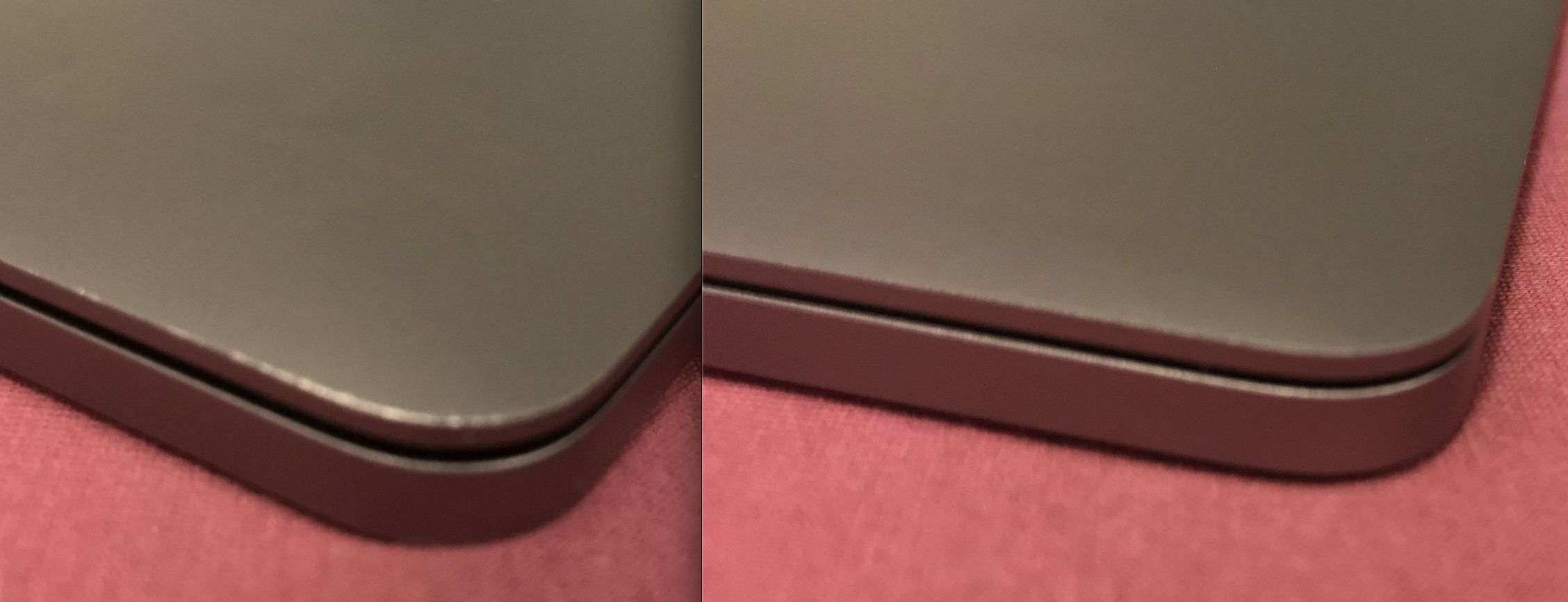 Známky použití na hliníkovích rozích displeje spodní část je nová je po výměně, viz. foto