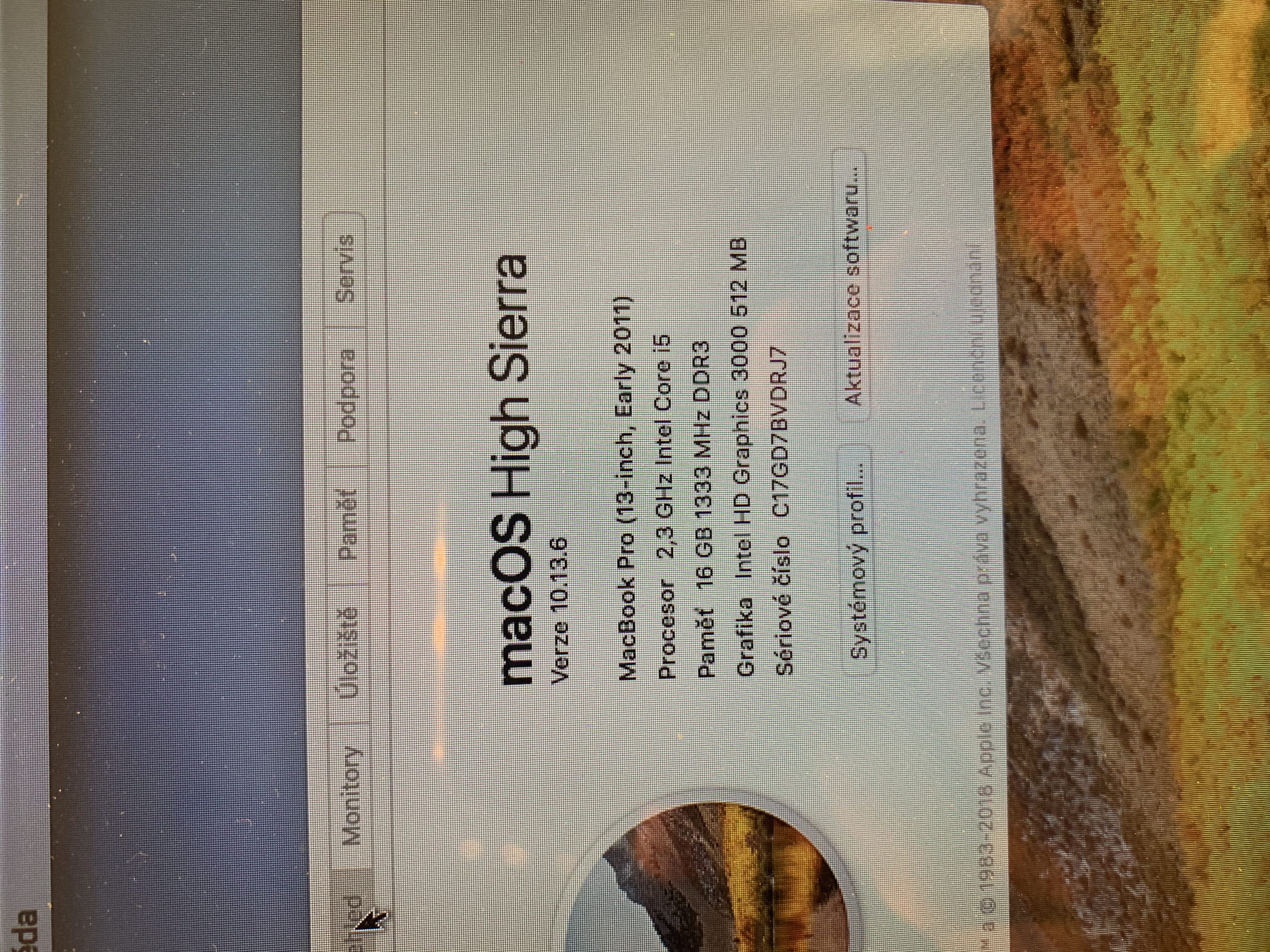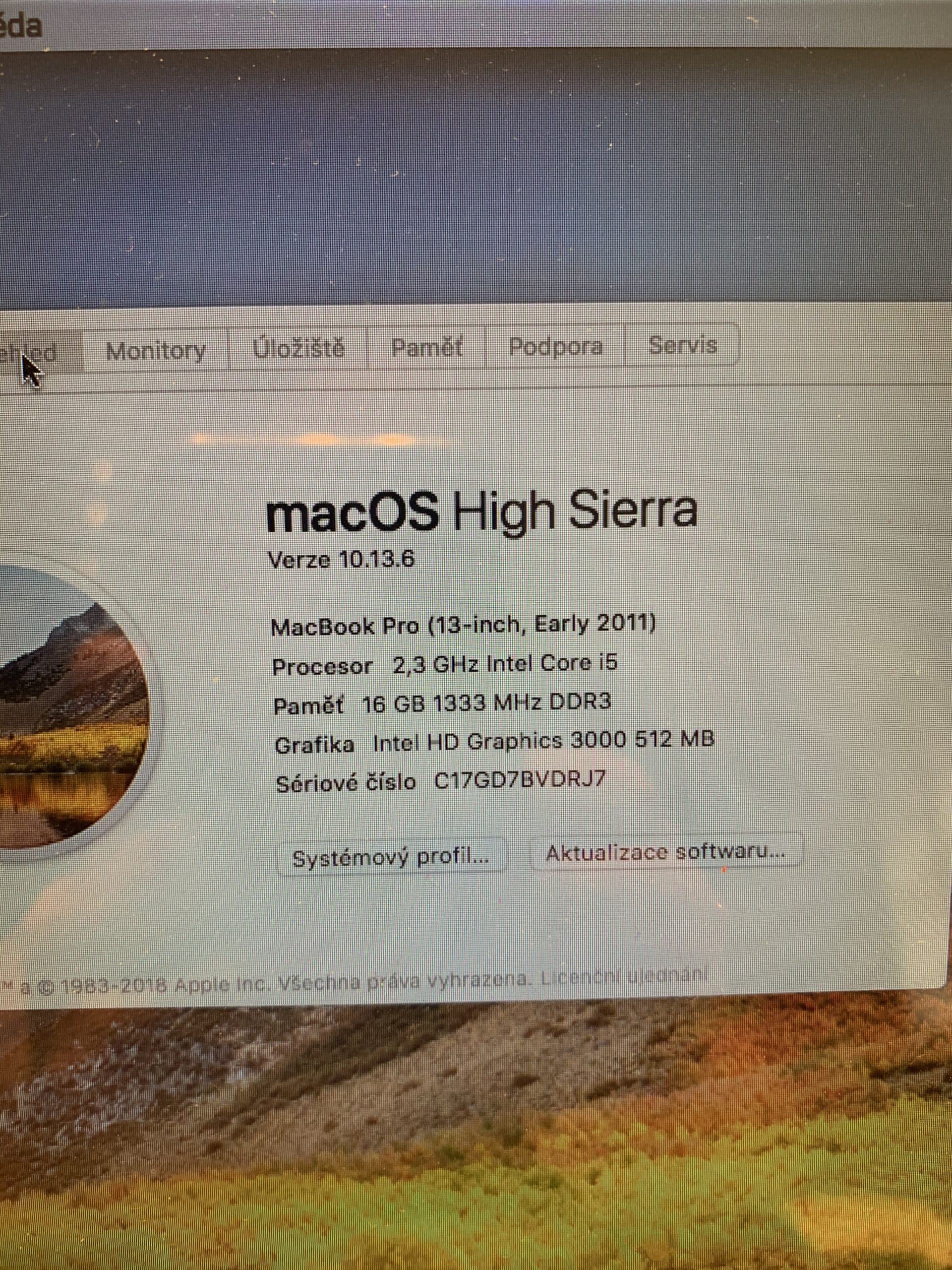 Prodám MacBook Pro 13" (2011), 2,3 GHz – i5, 16 GB/750 GB, High Sierra