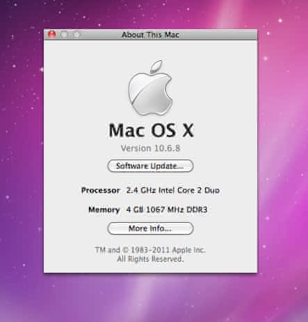 Stále je nainstalován můj oblíbený 10.6.8 Snow Leopard (podle mě nejstabilnější a nejlepší verze), softwarový update nechám na nového majitele.