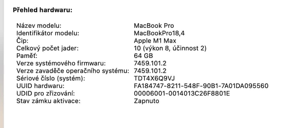 Prodám Macbook Pro 14 (US verze, celosvětová záruka do konce října, odpočet DPH není možný) v TOP configu:
