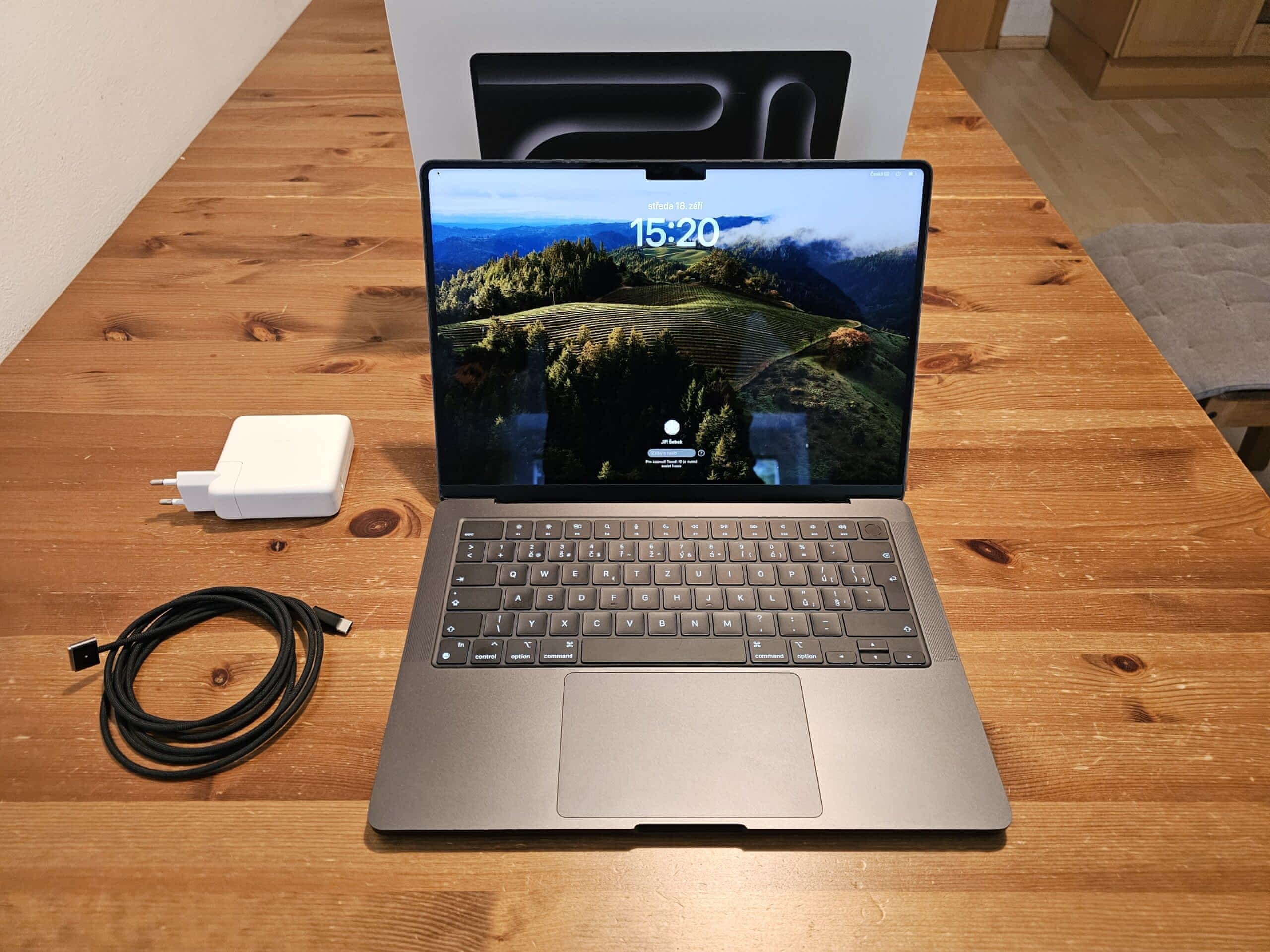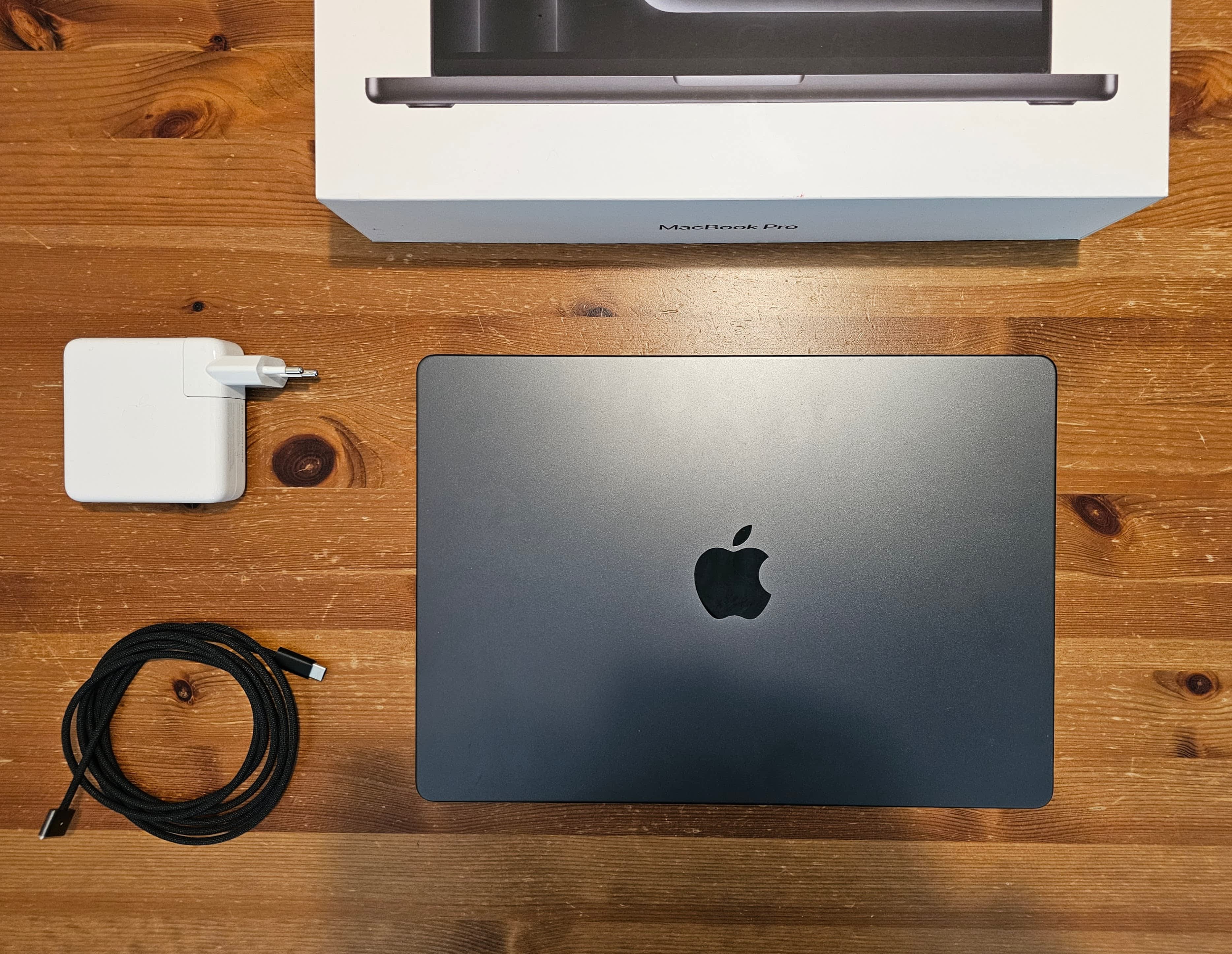 Prodám MacBook Pro 14" M3 PRO CZ 2023 Vesmírně černý. Apple M3 Pro (12jádrový), 14,2" IPS lesklý 3024 × 1964 px, 120 Hz, RAM 18GB, Apple M3 PRO 18jádrová GPU, SSD 1000GB