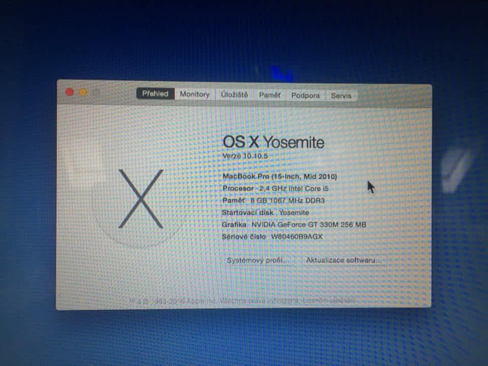 Prodám MacBook Pro 15,mid 2010, 2,4GHz, intel core i5, pameť 8gb, grafika Nvidia Ge Force GT 330M 256MB… nová baterie !!!