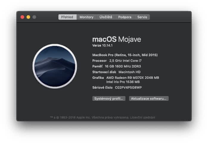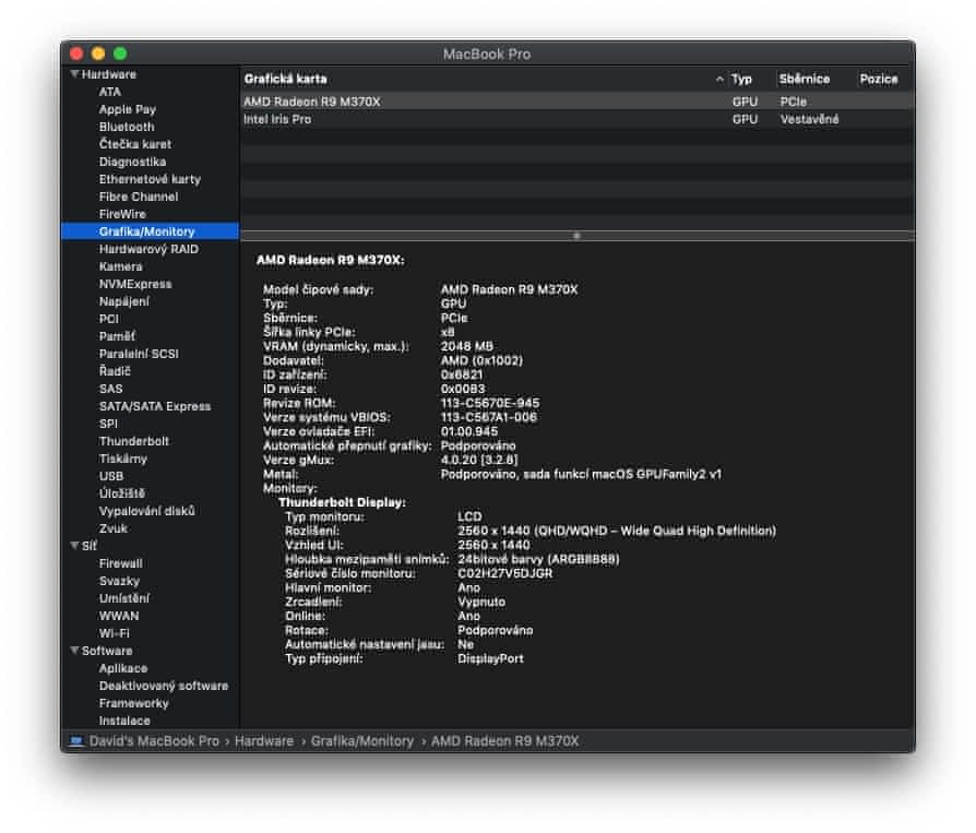 – Grafická karta: AMD Radeon R9 M370X 2048 MB grafické paměti