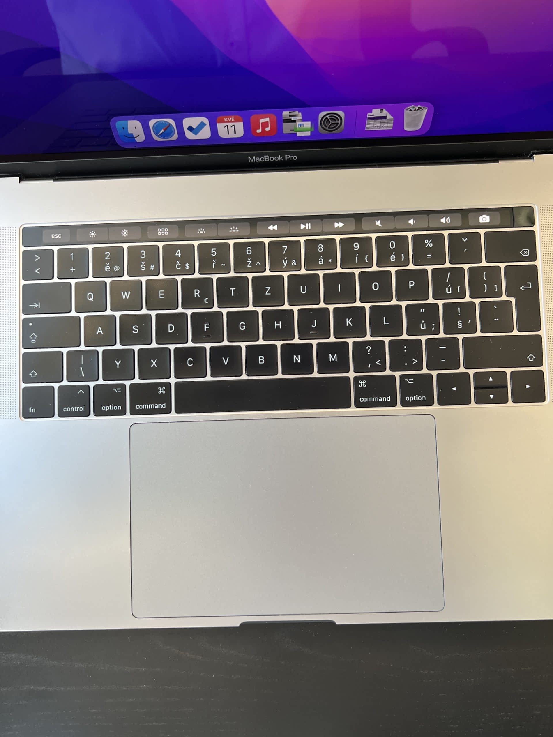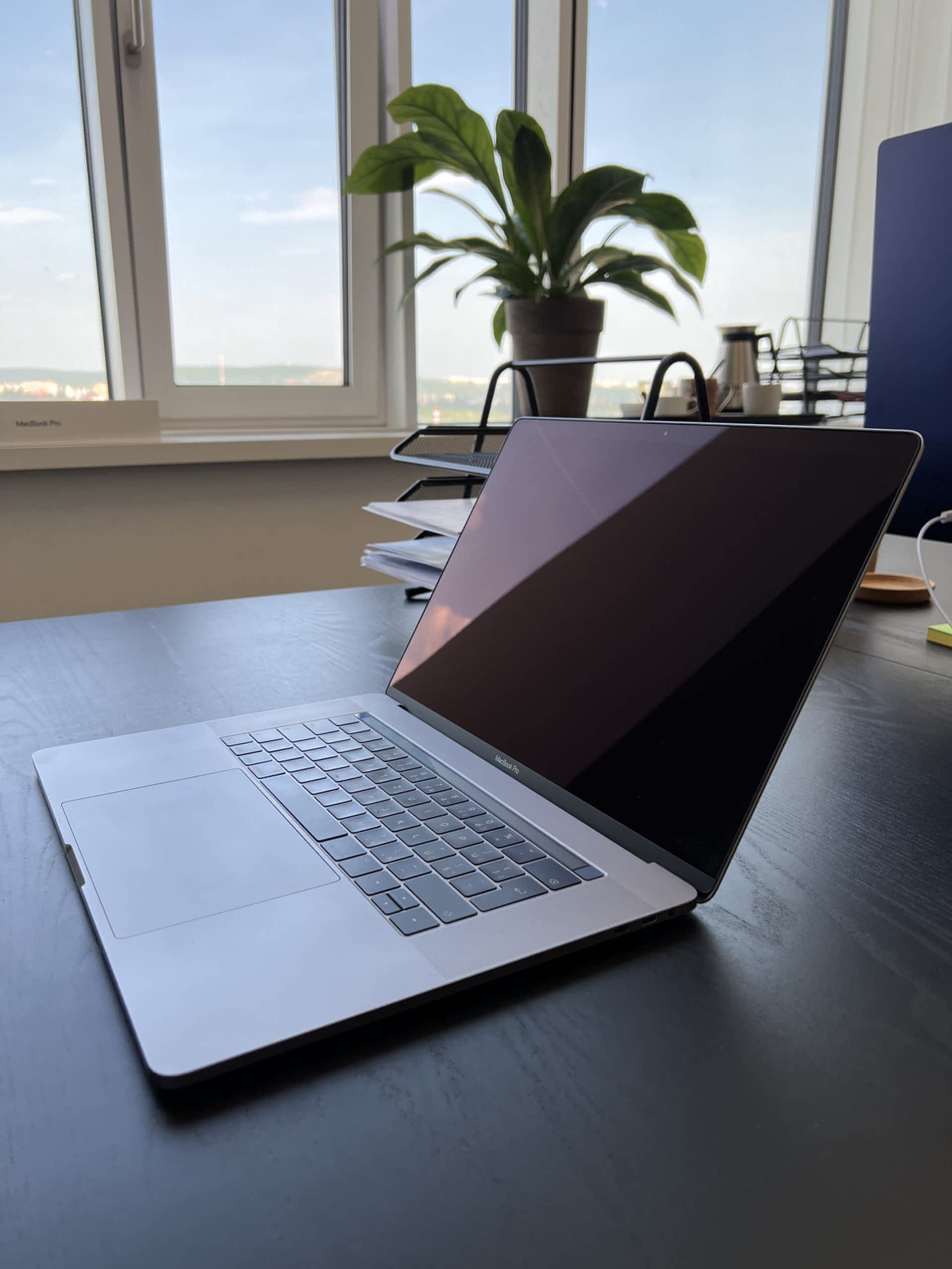Prodám 15″ MacBook Pro 2017, 16 GB ram, 256 GB SSD, čtyřjádrový Intel Core i7, Intel HD Graphics 630 1536 MB, barva Space Gray.