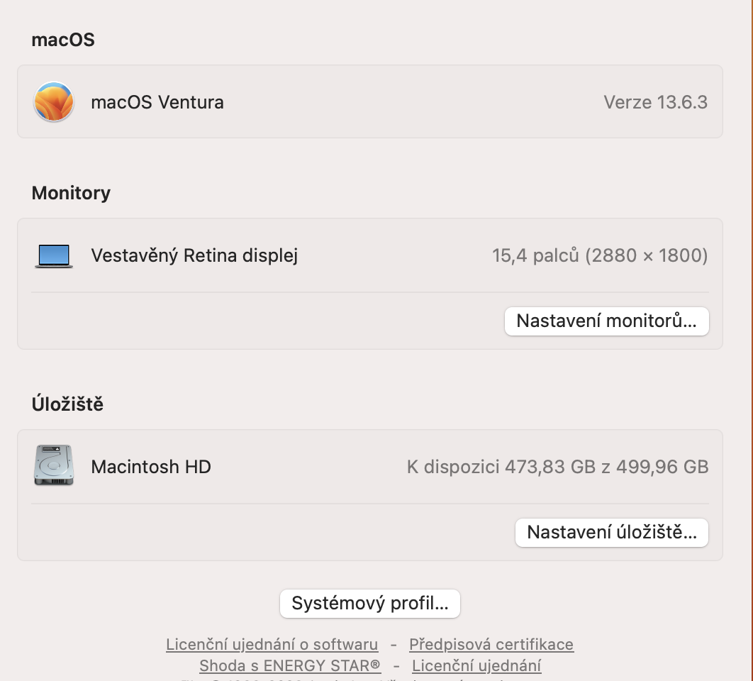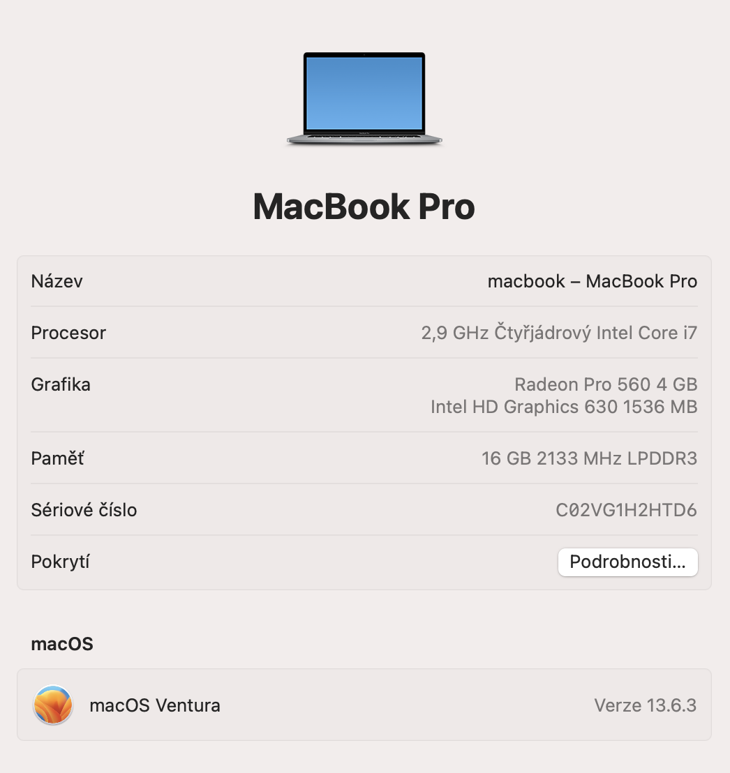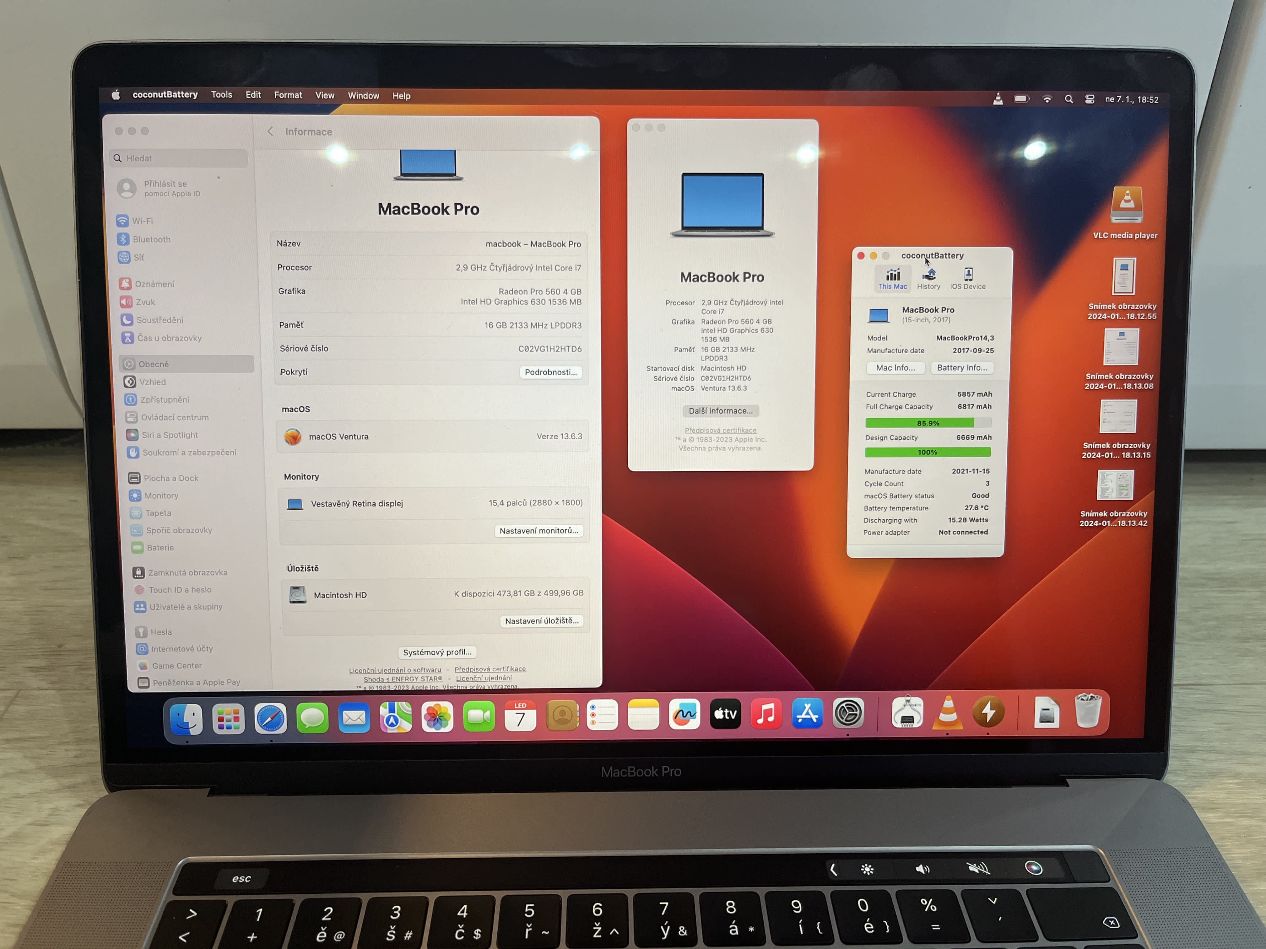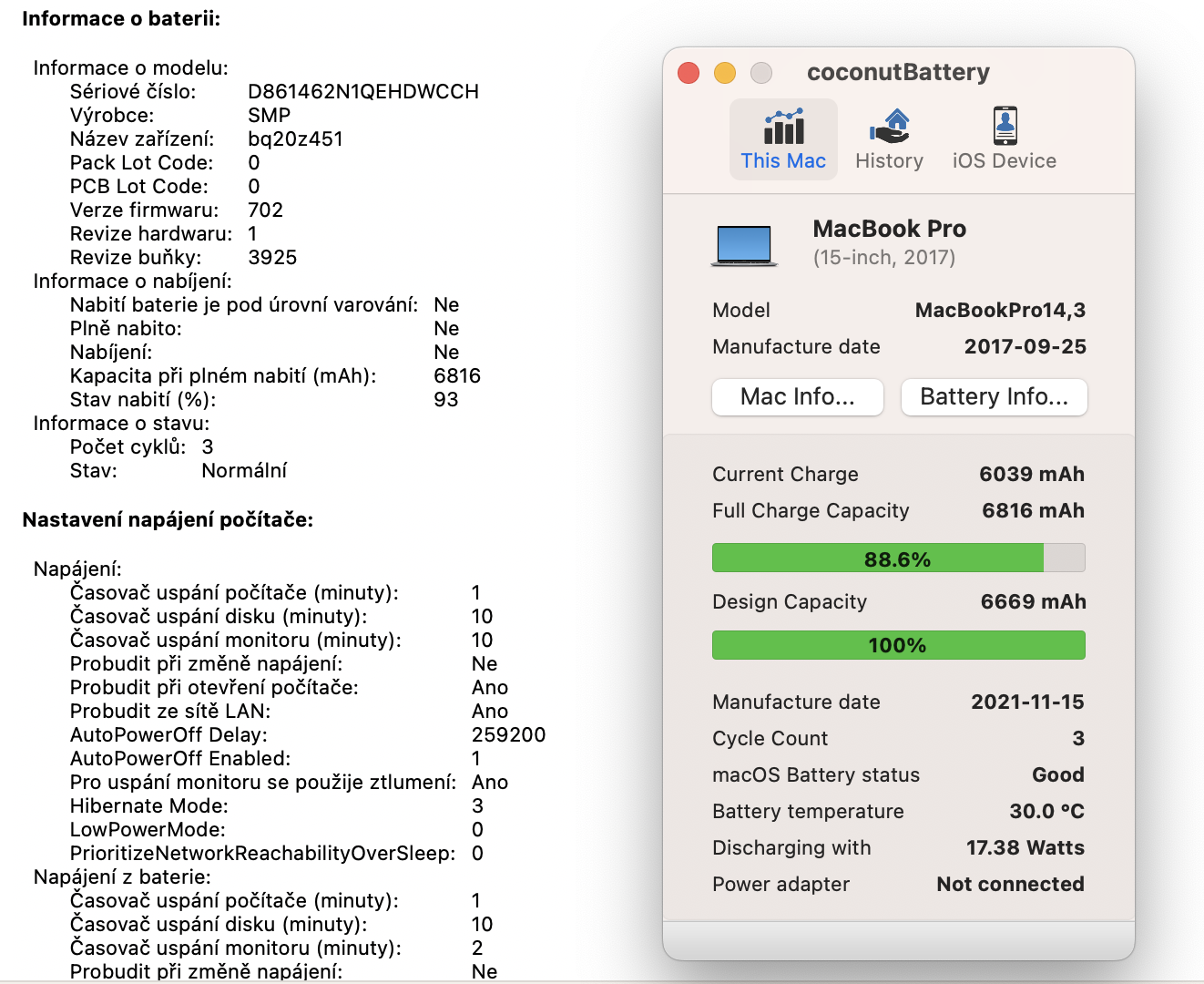 Macbook má novou baterku – pouze 3 cykly – 100% kapacita.