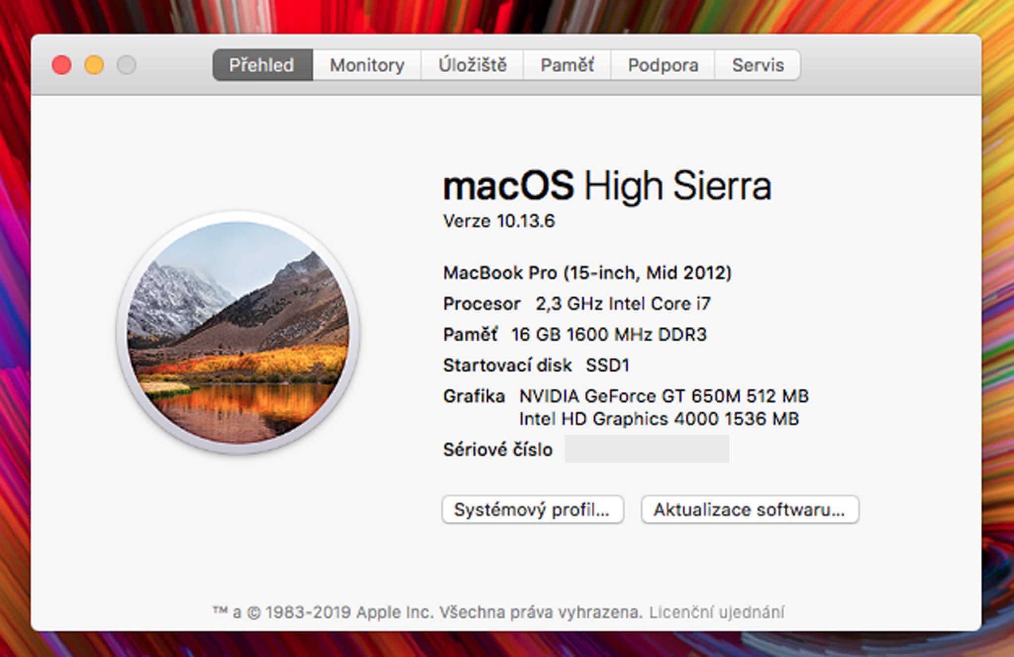 Prodám nesmrtelný MBP 15, model Mid 2012. Počítač pochází z české distribuce.