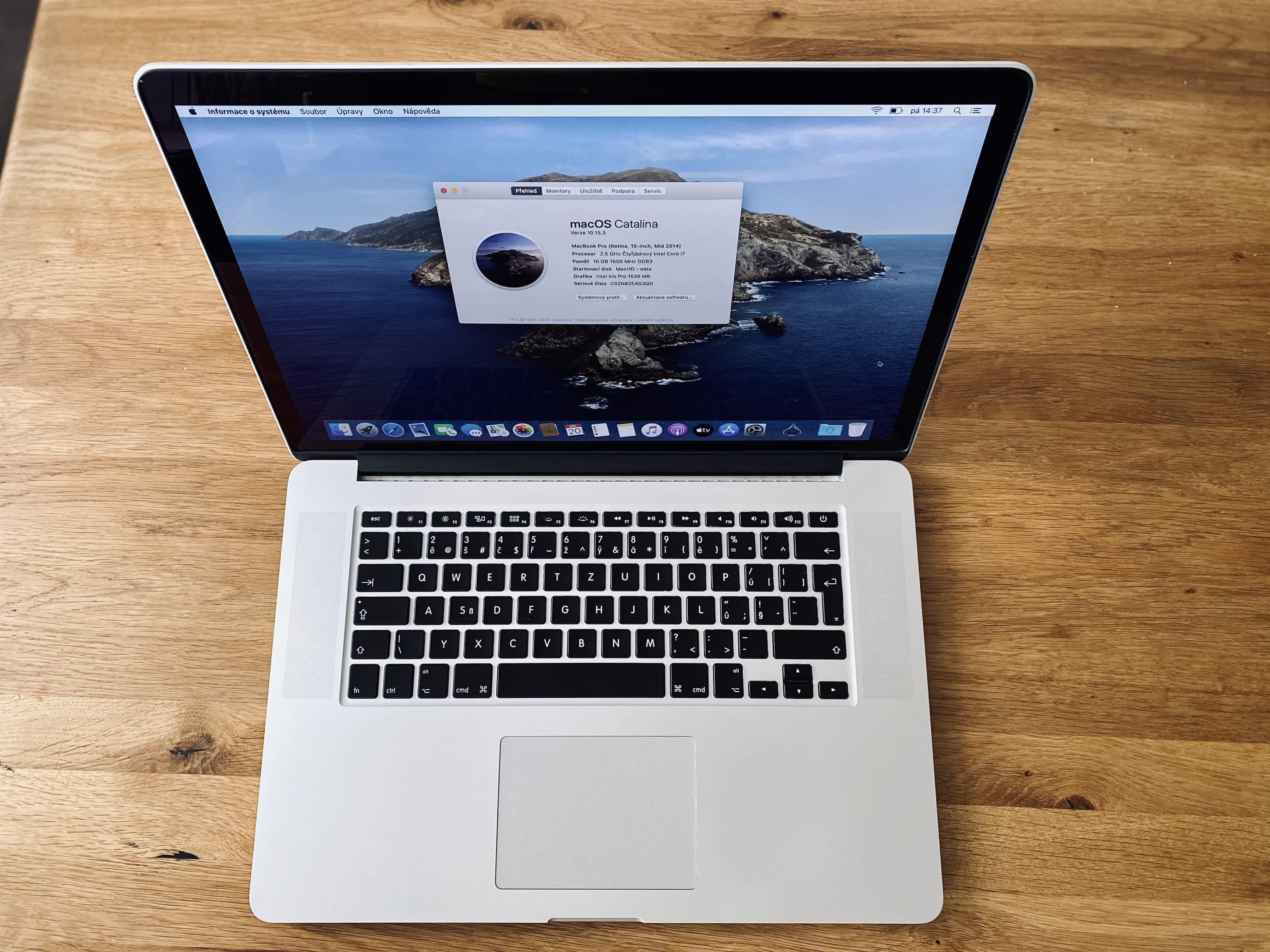 Nabízím k prodeji Macbook Pro 15 palců, modelový rok 2014, úplně novou baterií a ve 100% stavu. Klávesnice vyčištěna a dezinfikována.