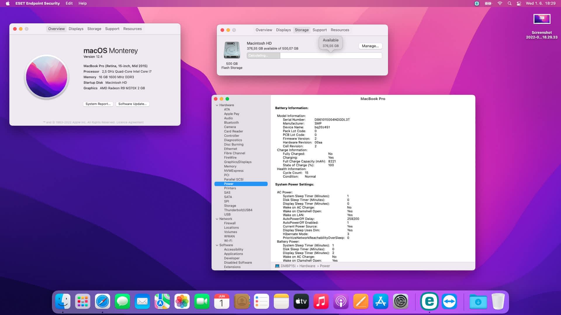 Baterie byla kupovaná nová neoriginální cca rok a půl na zpět, momentálně má Macbook 15 cyklů. Chvíli po koupi neoriginální baterie měl MacBook nehodu a stal se z něho stolní PC více než NTB.