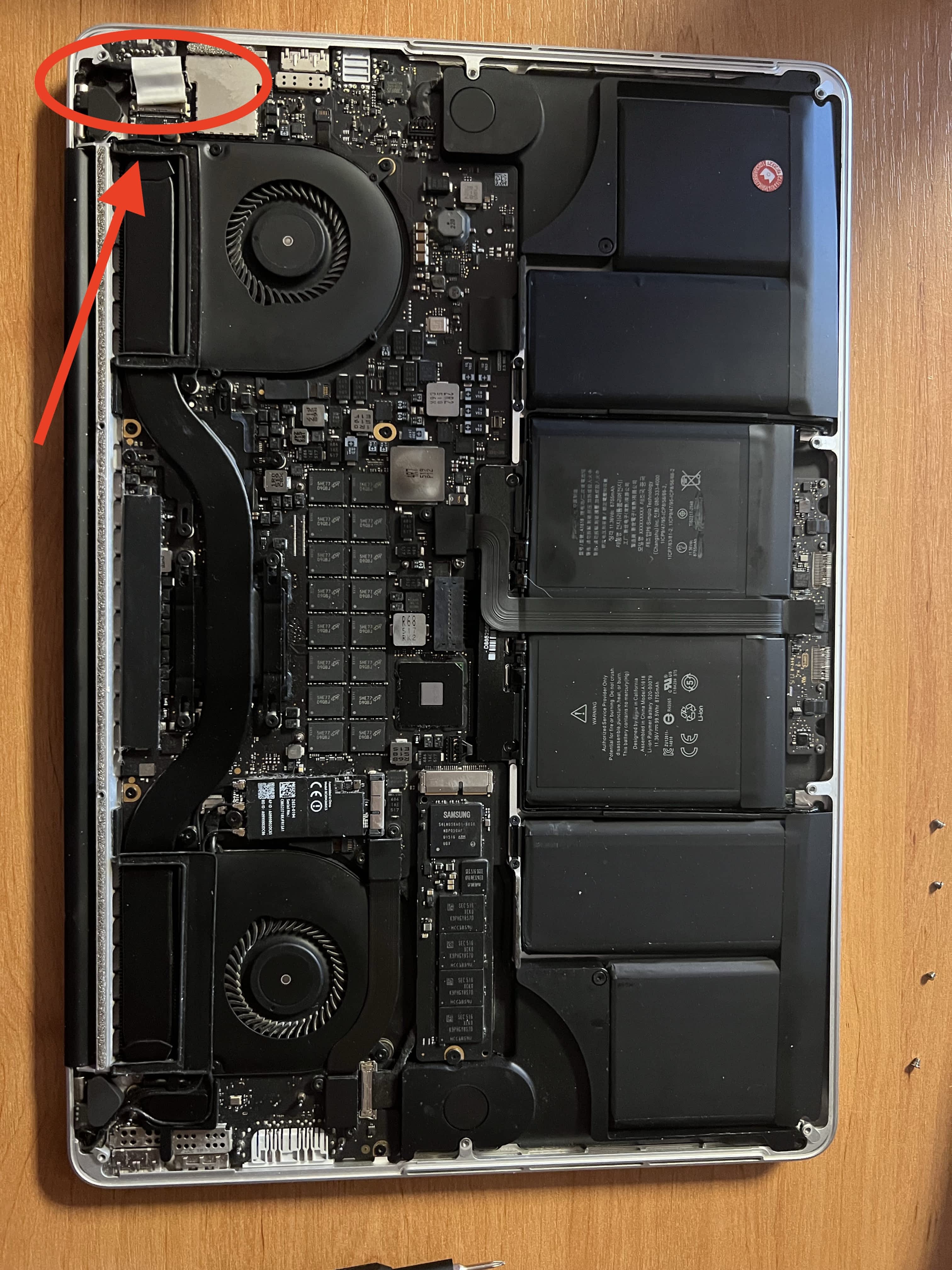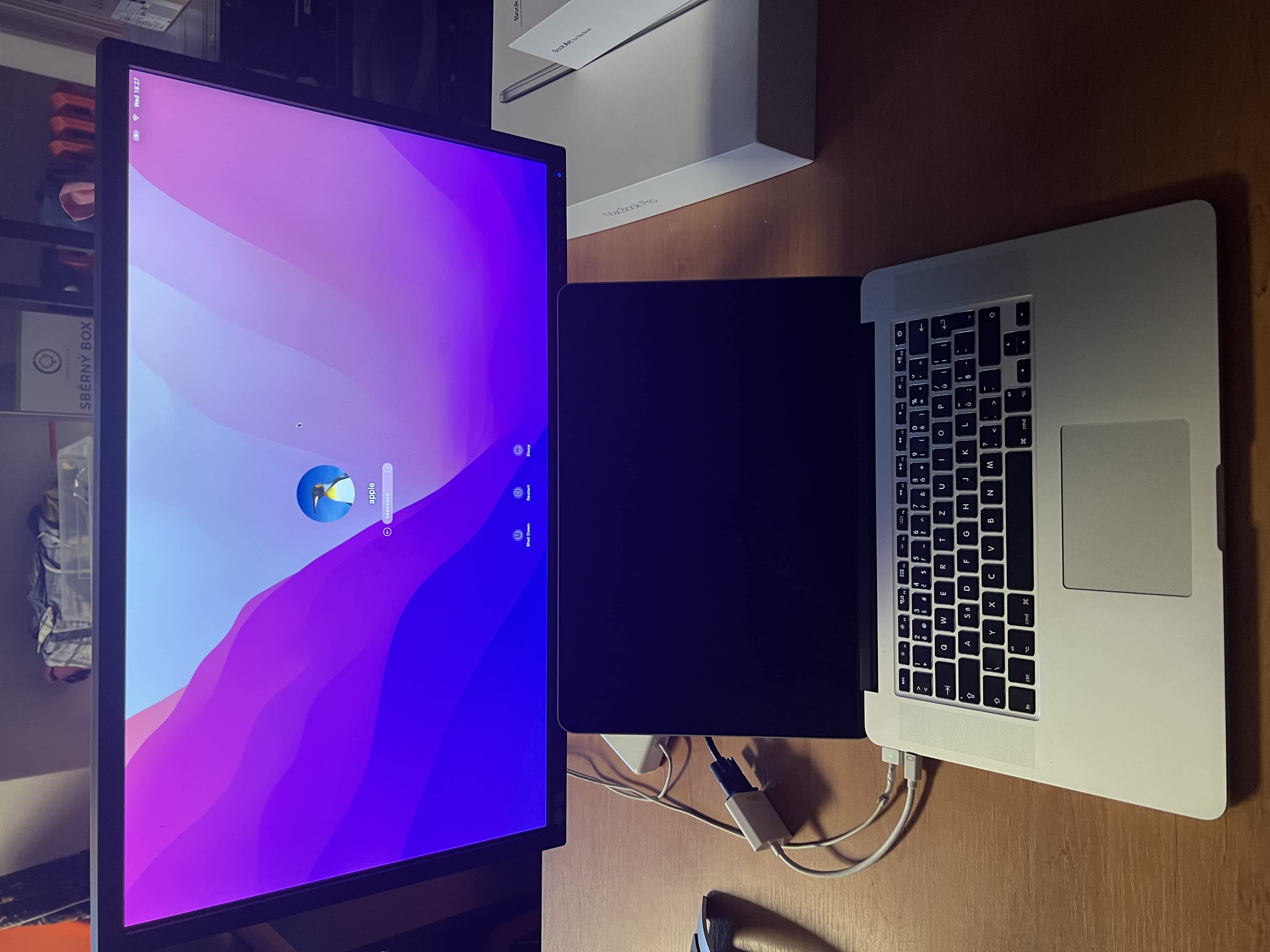 Display má odpojený flex kabel (foto), tedy Mac hledá display primárně na HDMI či Thunderbold redukci (VGA – foto)