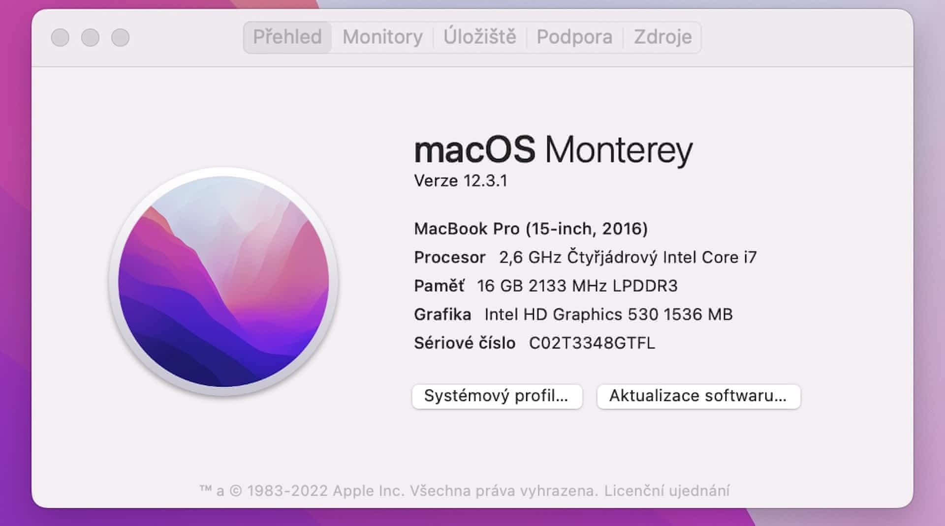 Prodám MacBook Pro 15" Retina CZ 2016 s Touch Barem Vesmírně šedý