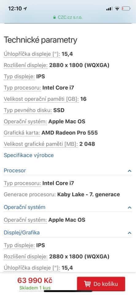 Možnost výměny za použitý MacBook Pro 13" 2017 bez TB (ve velmi dobrém stavu) + iPhone 8 Plus nový.