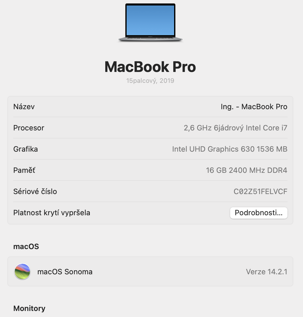 Grafická karta: Radeon Pro 555X 4GB,Intel HD Graphics 630 1536 MB