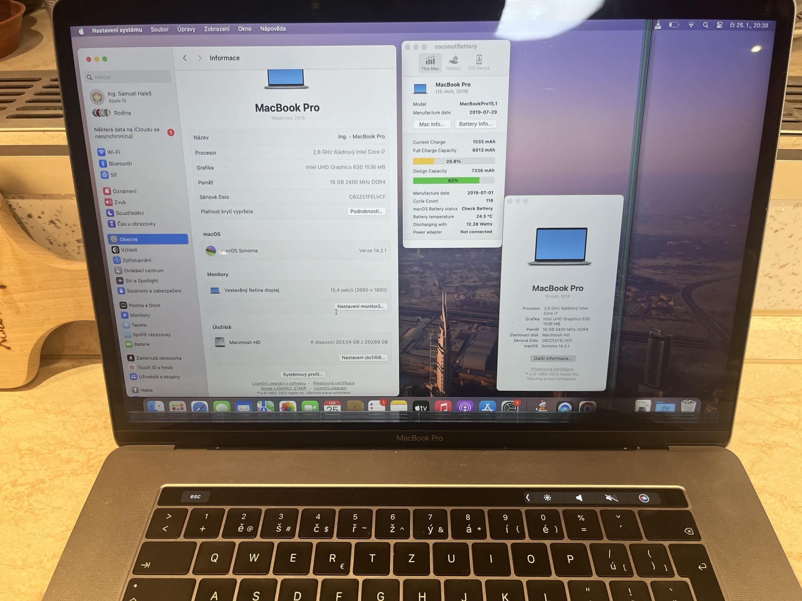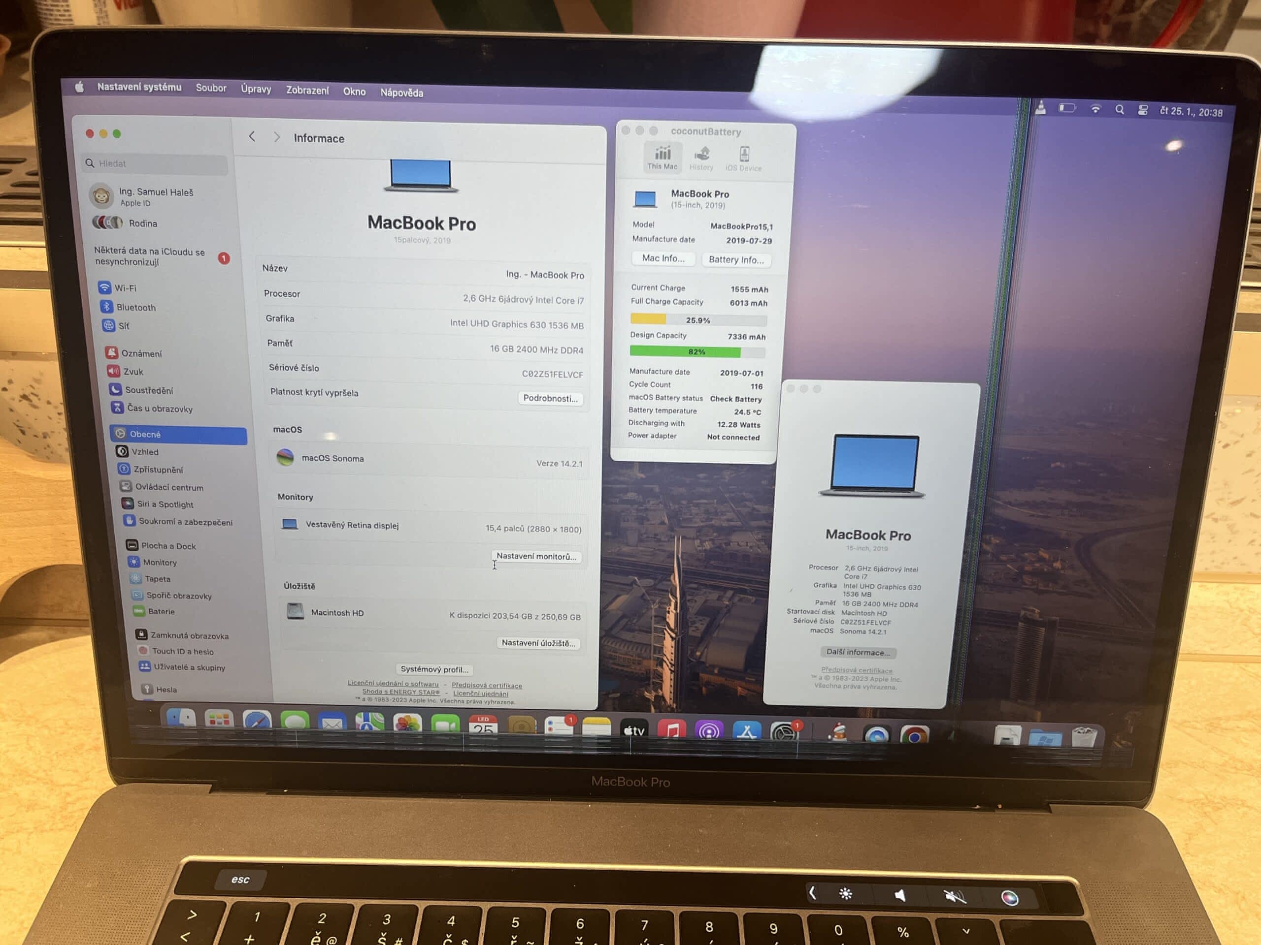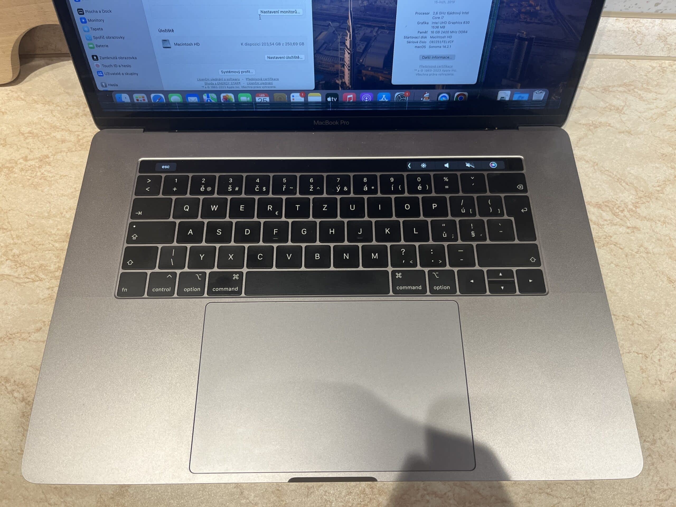 Macbook má poškozený display. Normálně jde používat. Případně jde připojit na externím monitor