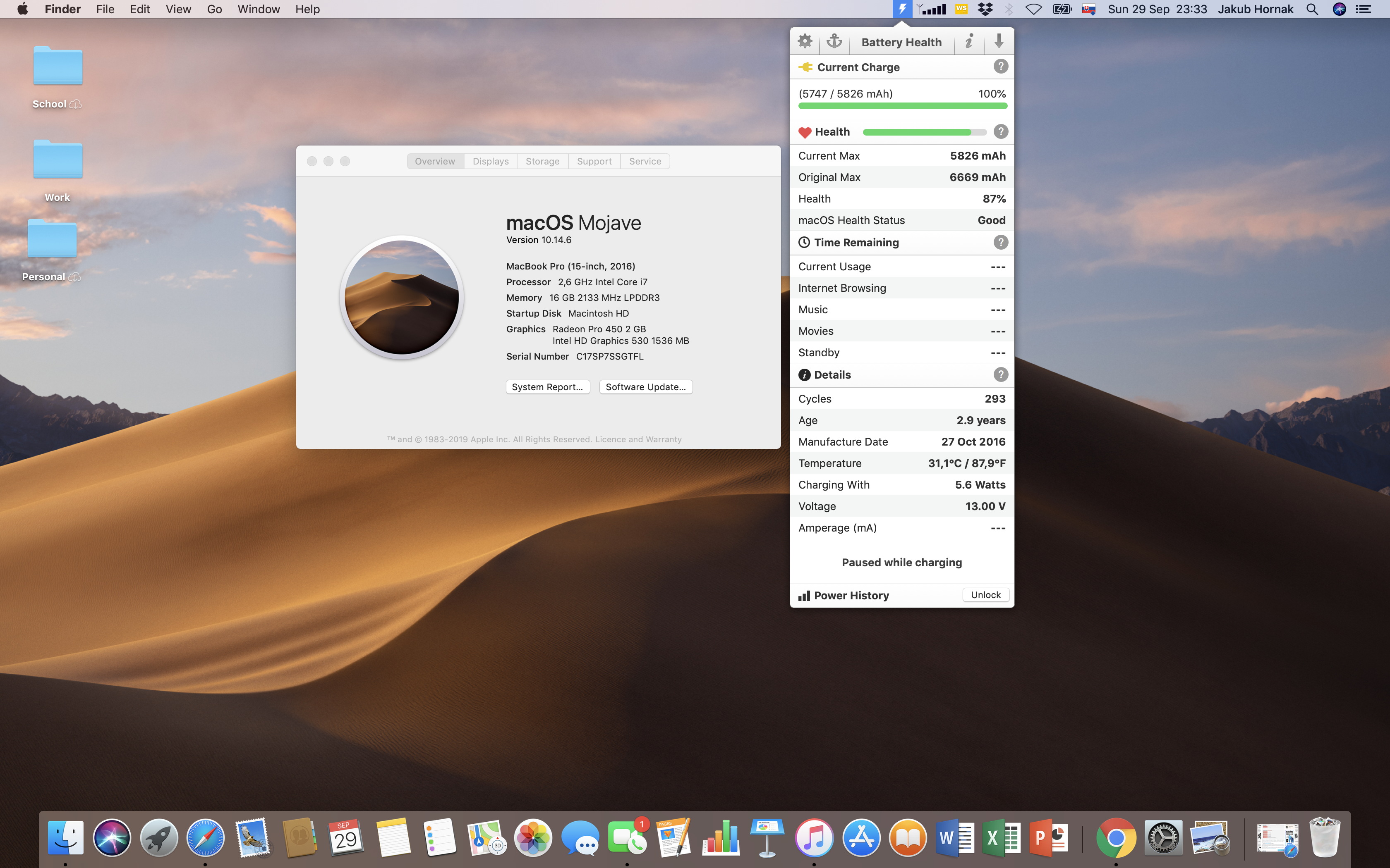 predám MacBook Pro 15-inch late 2016 256BG, 2,6GHz Intel Core i7 v TOP stave. Kúpený v 12/2016, vstavaný Retina display, slovenská klávesnica, málo používaný, 293 cyklov batérie, 2 menšie škriabance (viď foto).