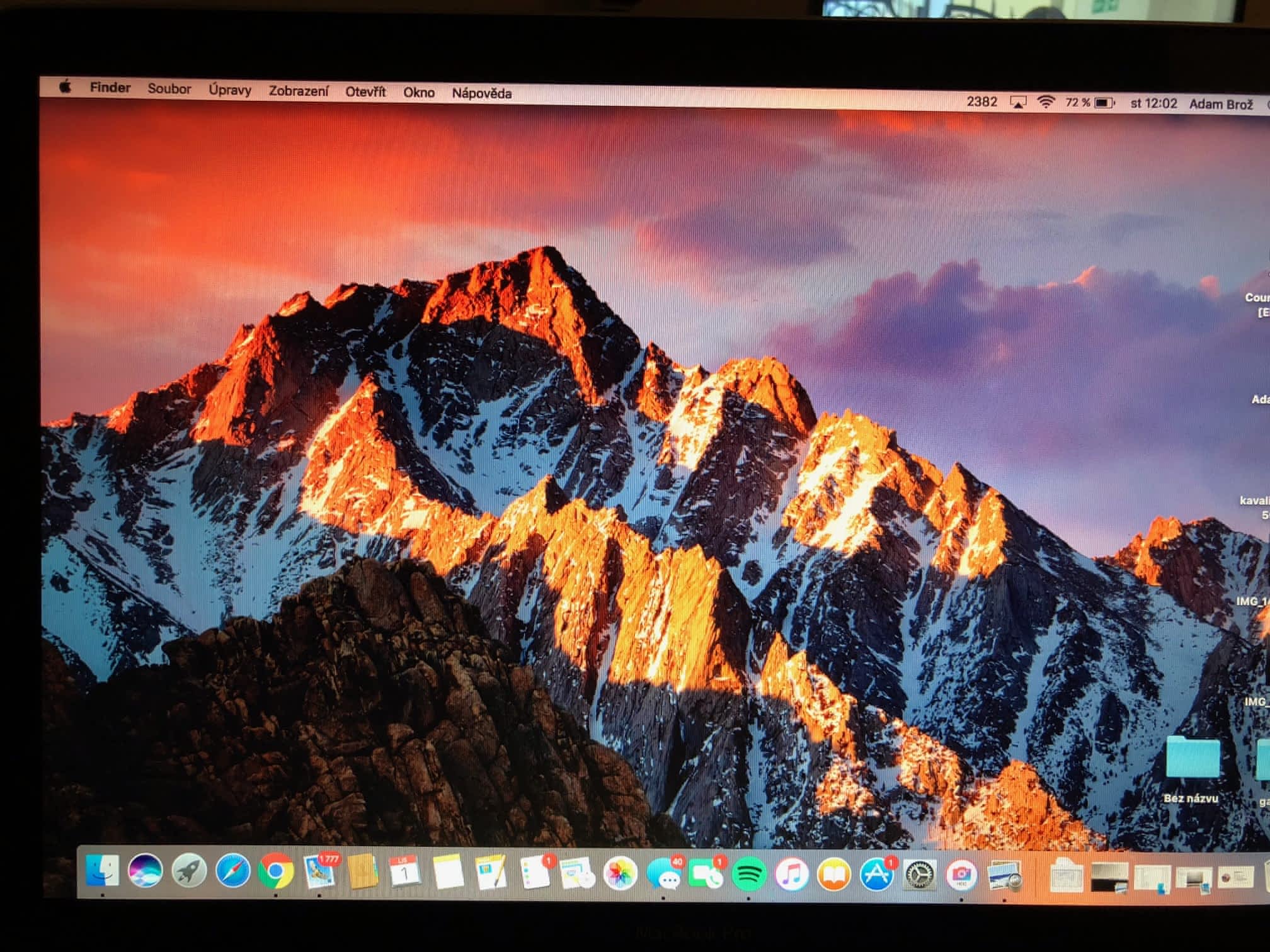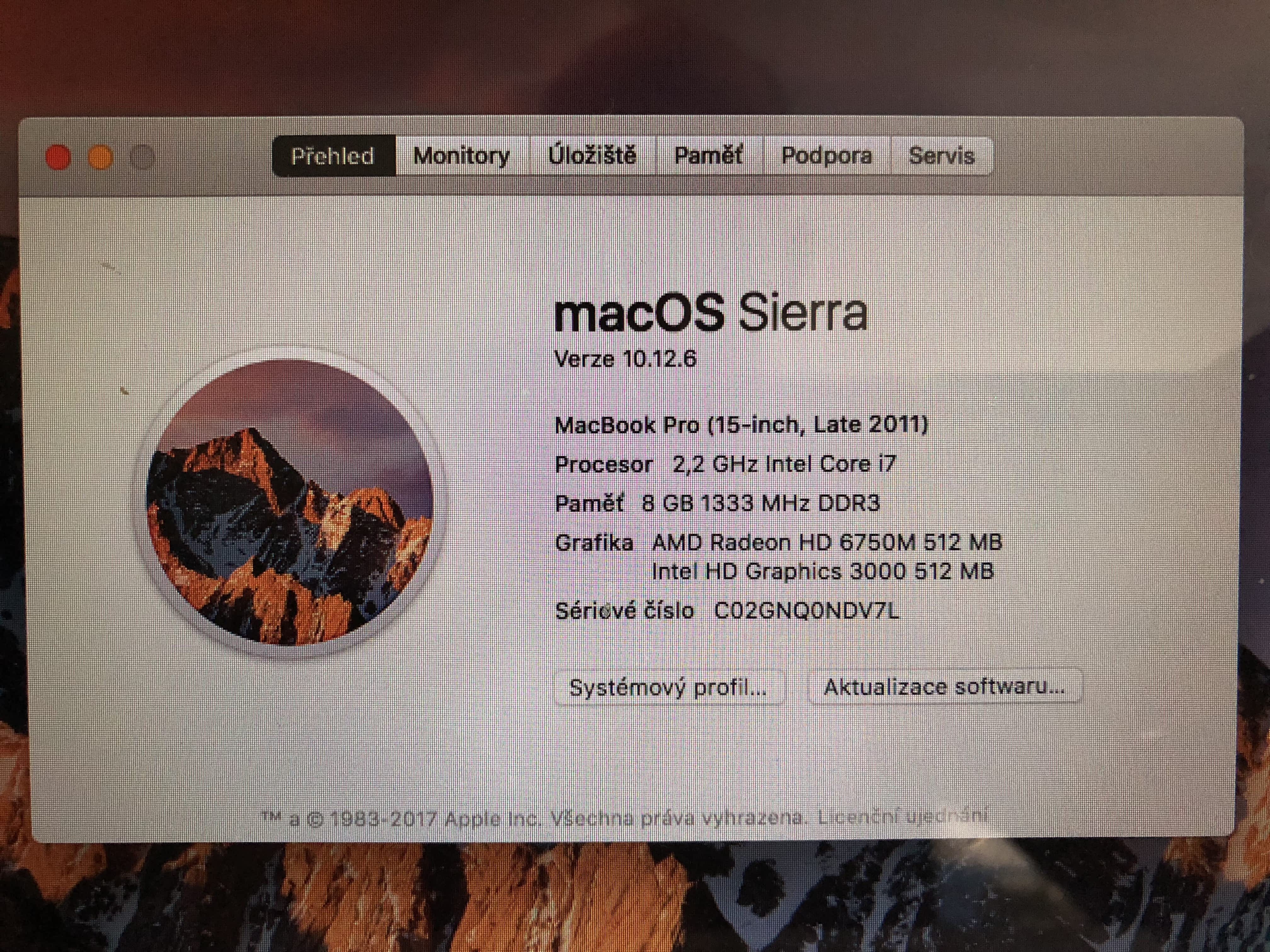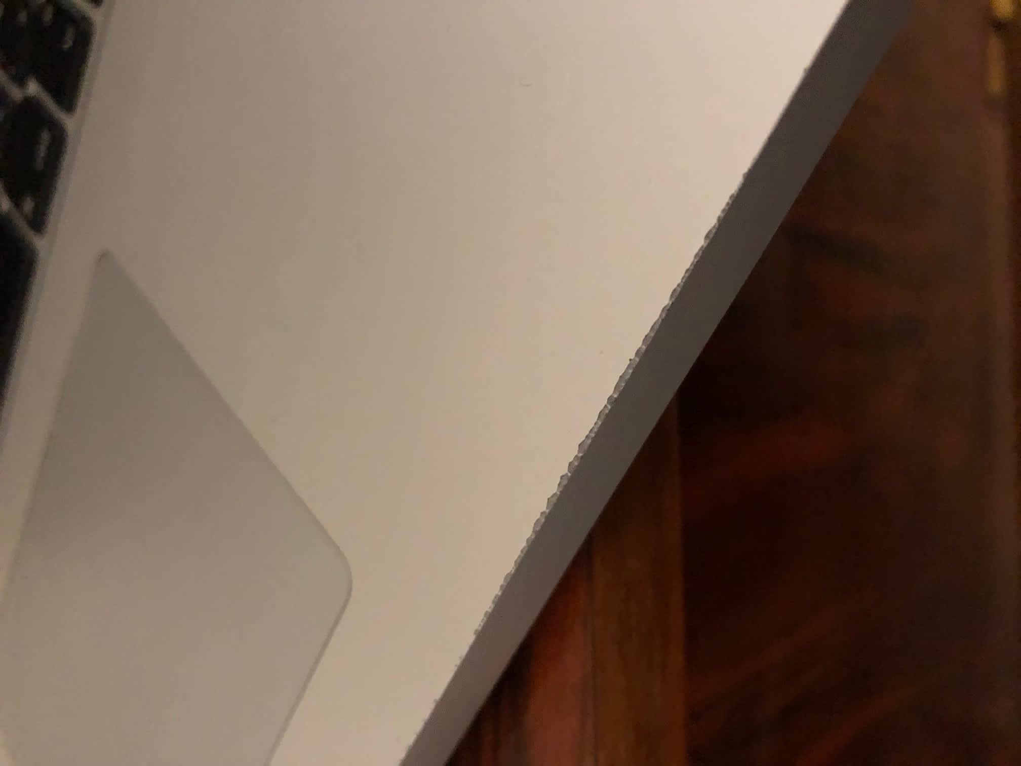 MacBook je plně funkční, odřená hrana vpravo od trackpadu, v oblasti jablka je viditelné lehké prosvítání, které ale při běžném použítí nelze vidět. Lze spatřit z ostrého úhlu při vysokém kontrastu na bílém pozadí