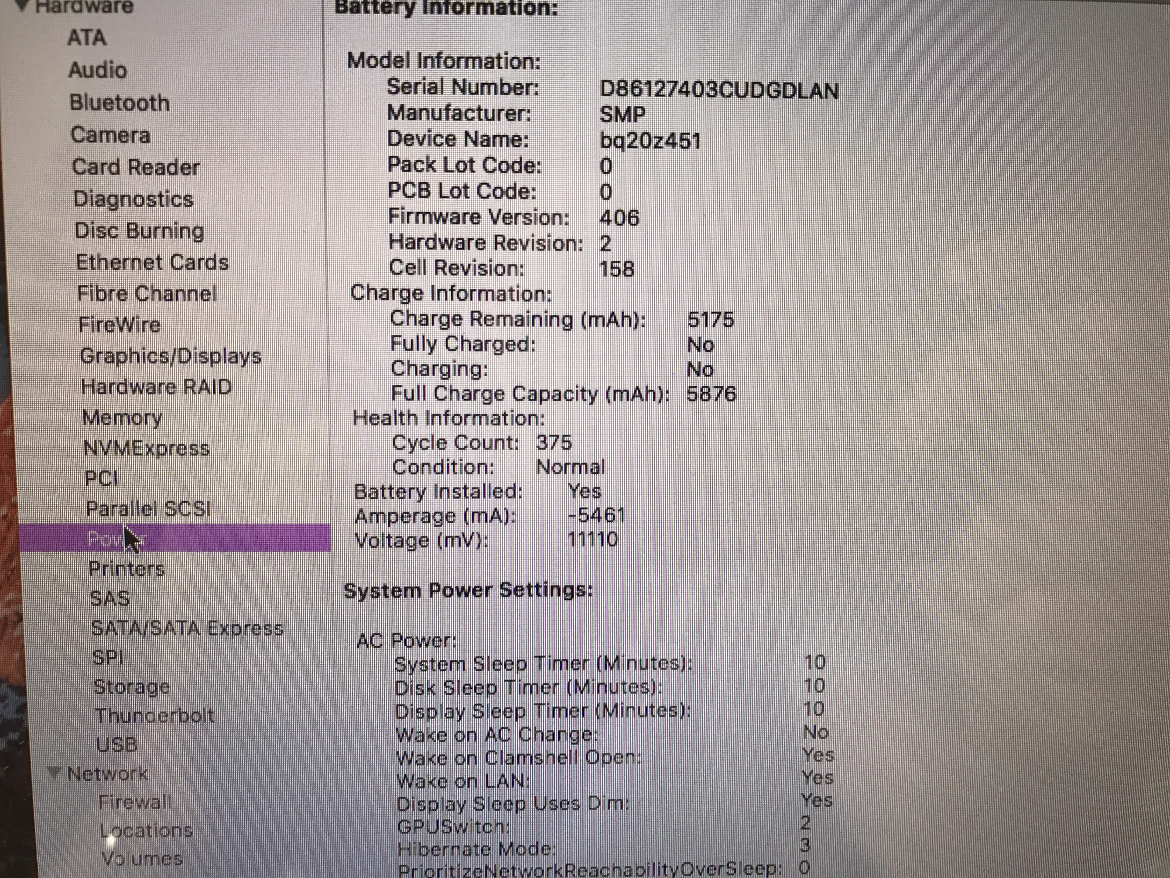 Battery: 375 cycles