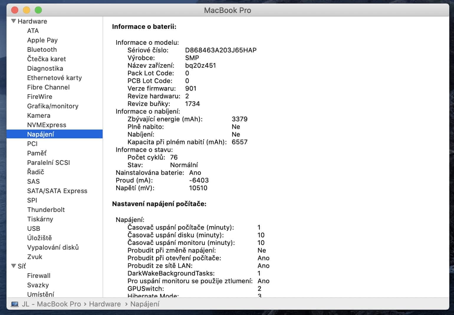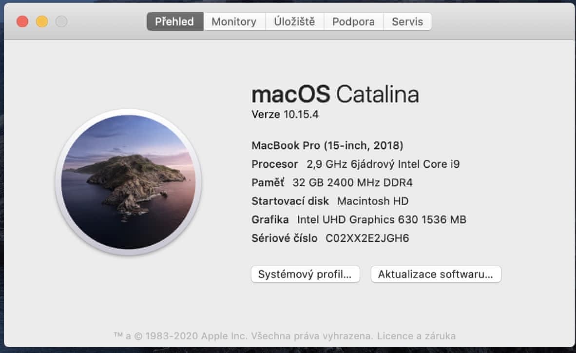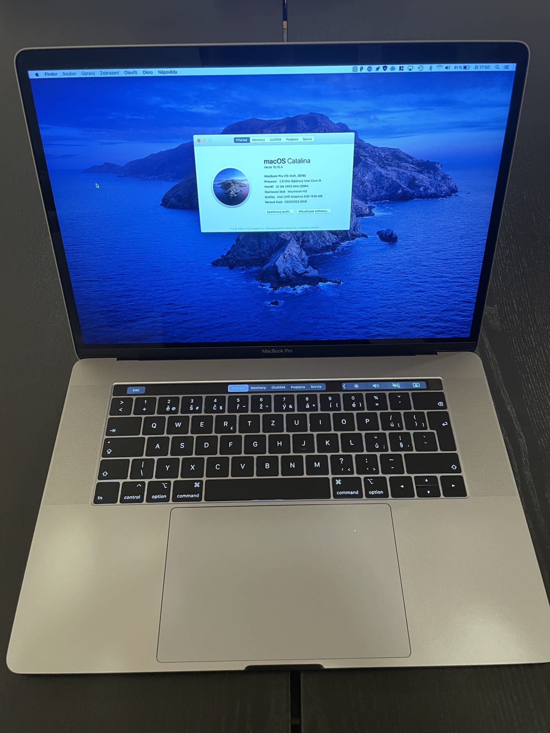 Prodám MacBook Pro 15" vybavený 6 jádrovým procesorem Intel Core i9 2,9 GHz, 32G GB pamětí RAM, SSD diskem o velikosti 500 GB a grafickou kartou Radeon Pro 560X. Baterie má za sebou pouze 76 nabíjecích cyklů. MacBook je CTO, tedy nakonfigurován na zakázku.