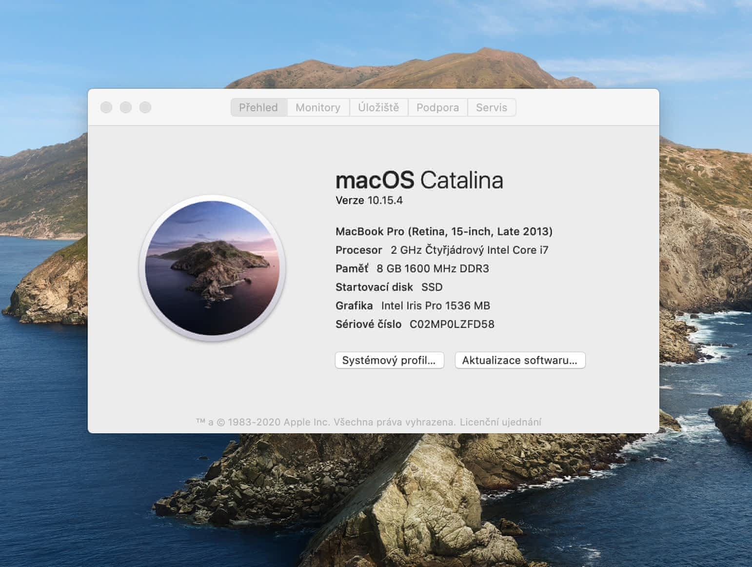 Procesor i7-4750HQ (2 GHz, TB až 3,2 GHz), 8 GB DDR3 RAM, 256 GB SSD, grafika Intel Iris Pro