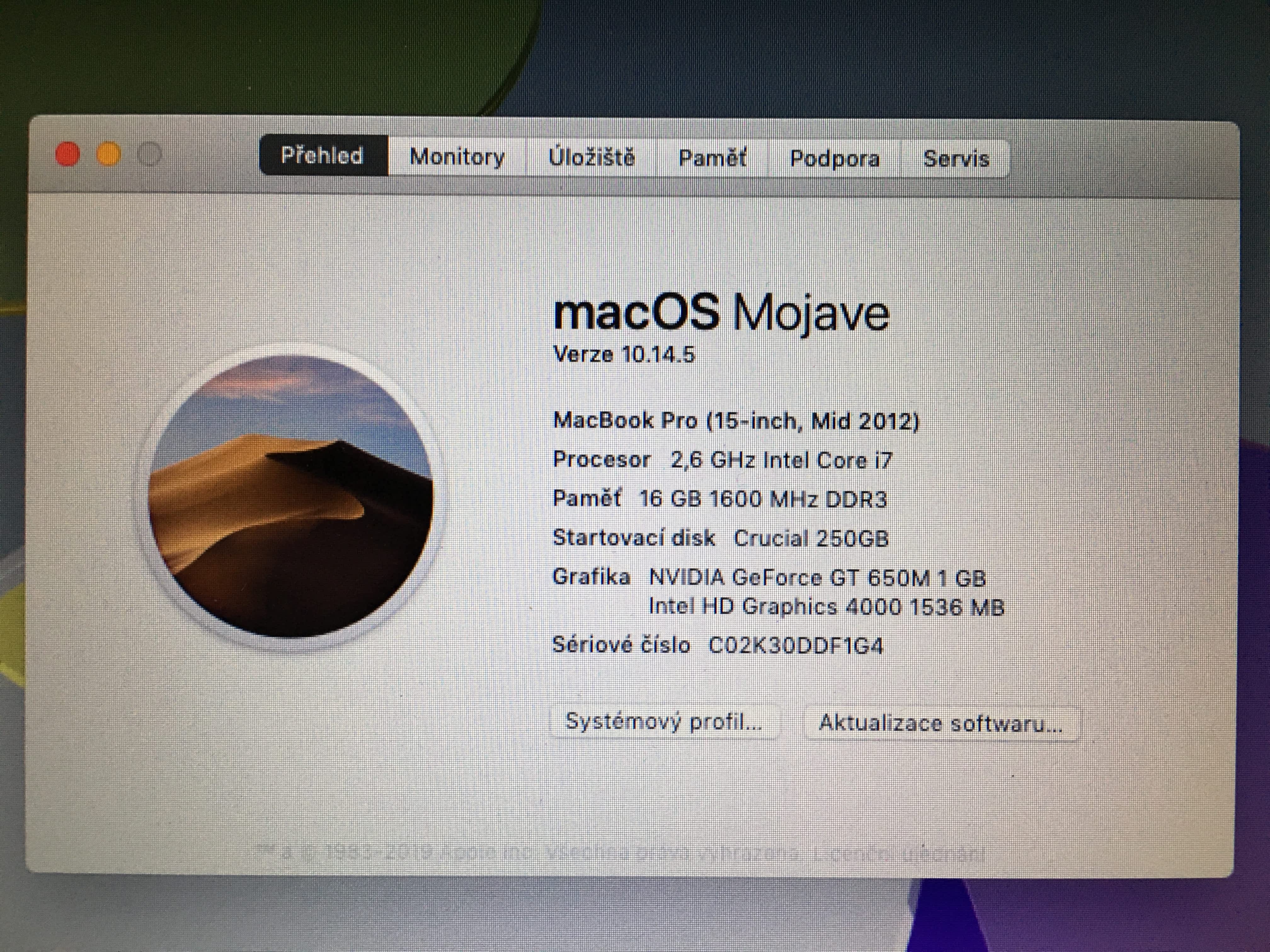 Prodám MacBook Pro 15” Mid 2012 1650 x 1050 ve výborném funkčním stavu.