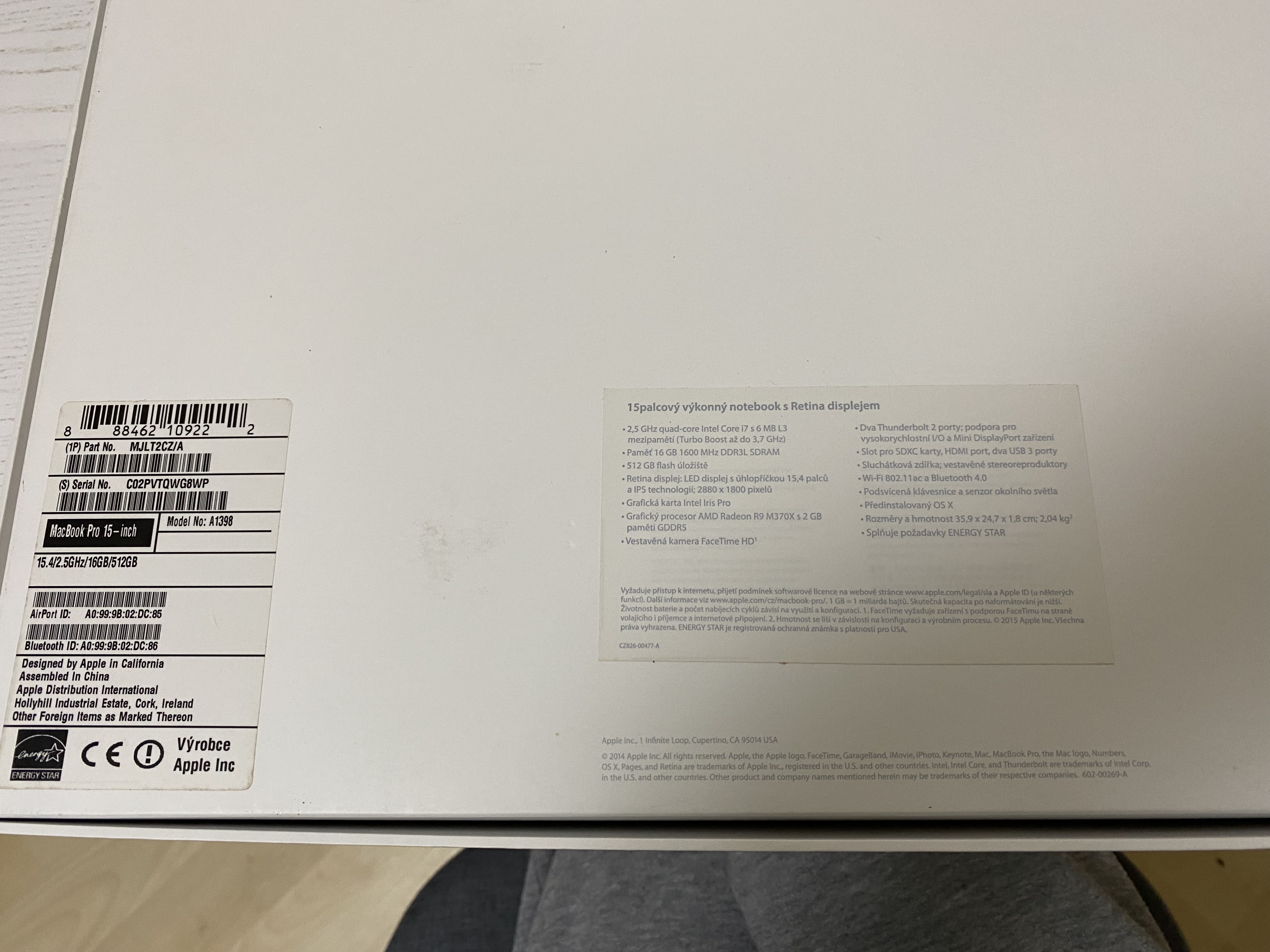 Nabízím k prodeji MacBook Pro 15” mid 2015, i7 2.5Ghz, 512GB SSD, Radeon R9 2GB, 16GB ram.