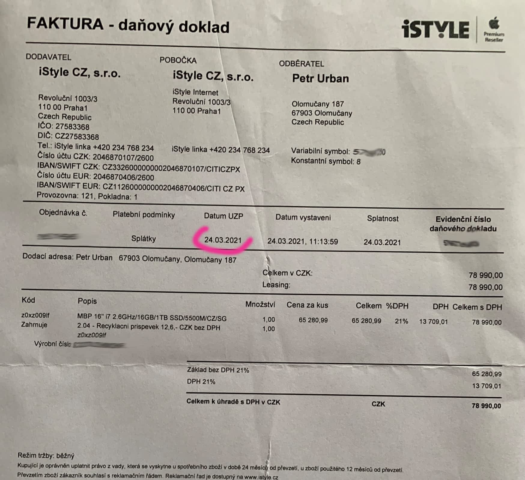 Prodám MacBook Pro 16" 2,6GHz 6jádrový procesor, 16GB RAM, 1TB, AMD Radeon Pro 5500M 4 GB – vesmírně šedý 2019