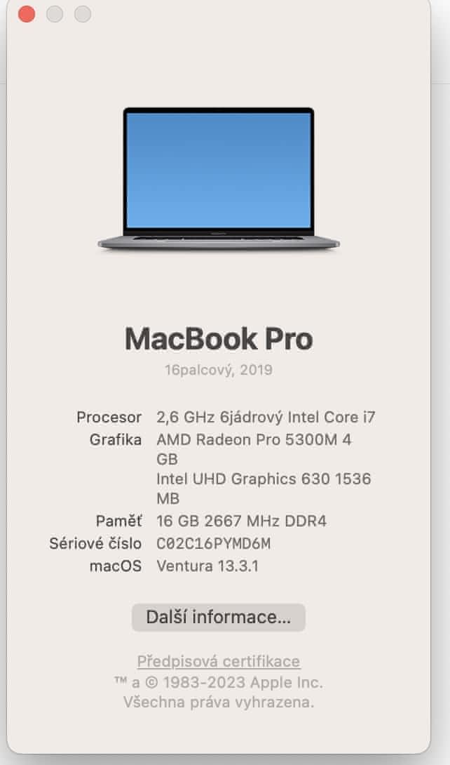 – Procesor: 2,6 Ghz 6 jádrový Intel Core i7
