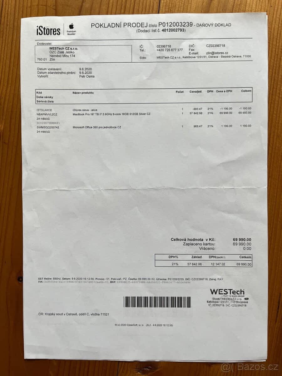 Prodám macbook pro 16”, koupil jsem jej nový v roce 2020, i7, 2,6GHz, 16GB, 512 GB. Preferuji osobní předání, F-M, Ostrava, Havířov, Brno