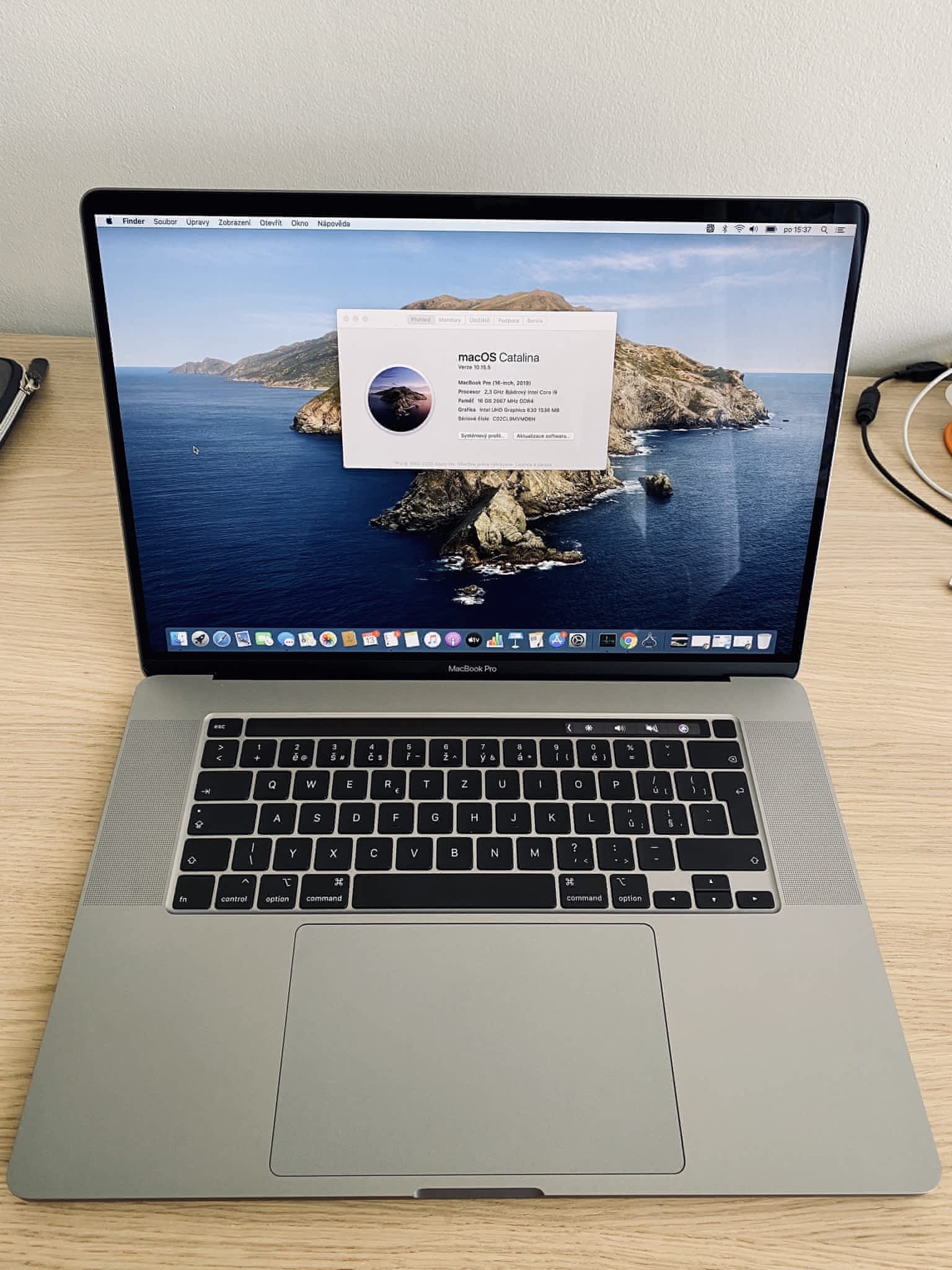 Nabízím téměř nový Macbook Pro 16 Space Grey ve specifikaci i9 (8 jádro, 2,3GHz, 16GB RAM, Intel Iris + AMD Radeon Pro 5500M 4GB, s úložištěm 1TB SSD.