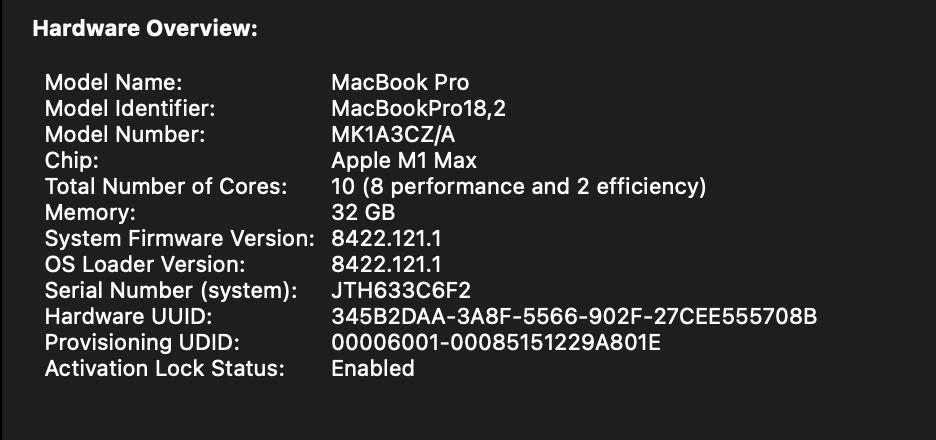 procesor Apple M1 Max s 10ti jádry a 32jádrovým GPU.
