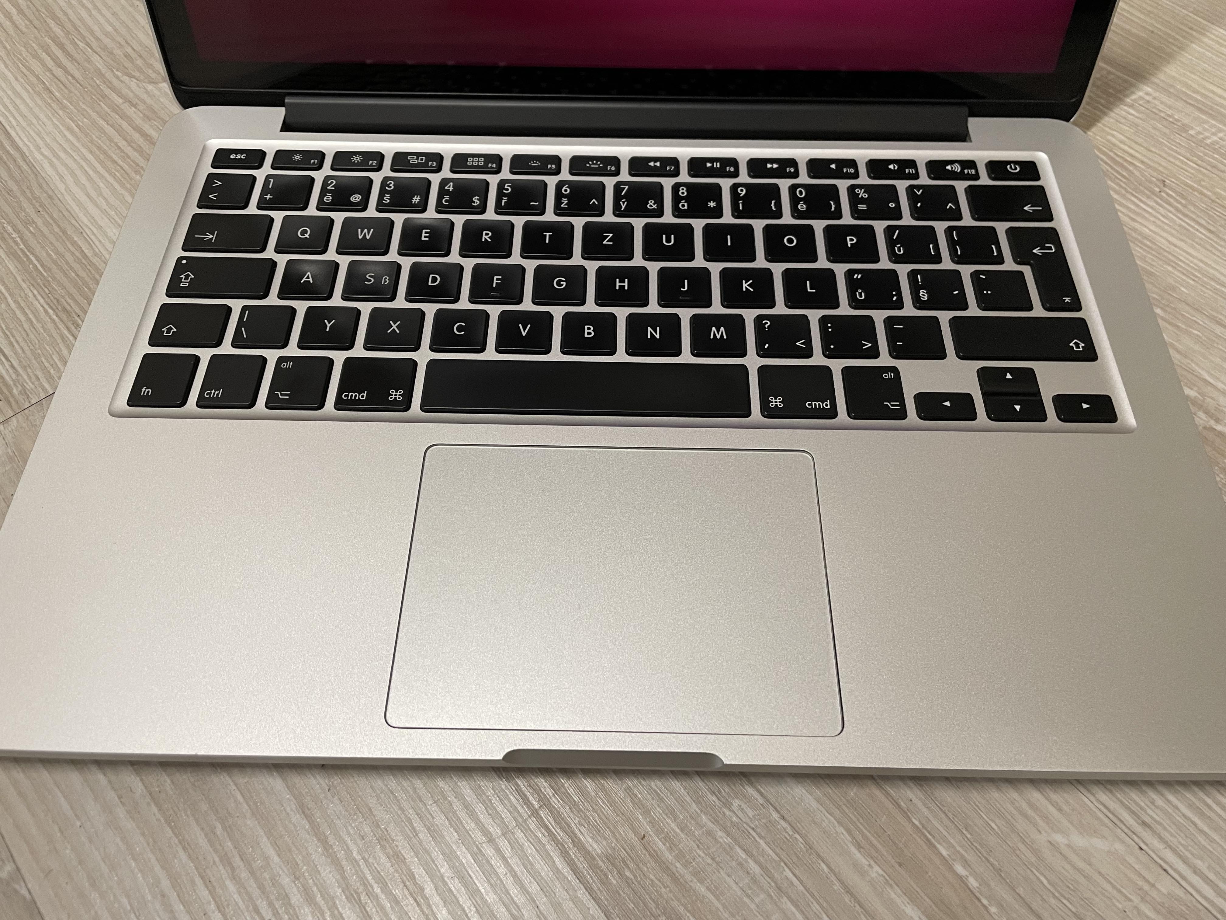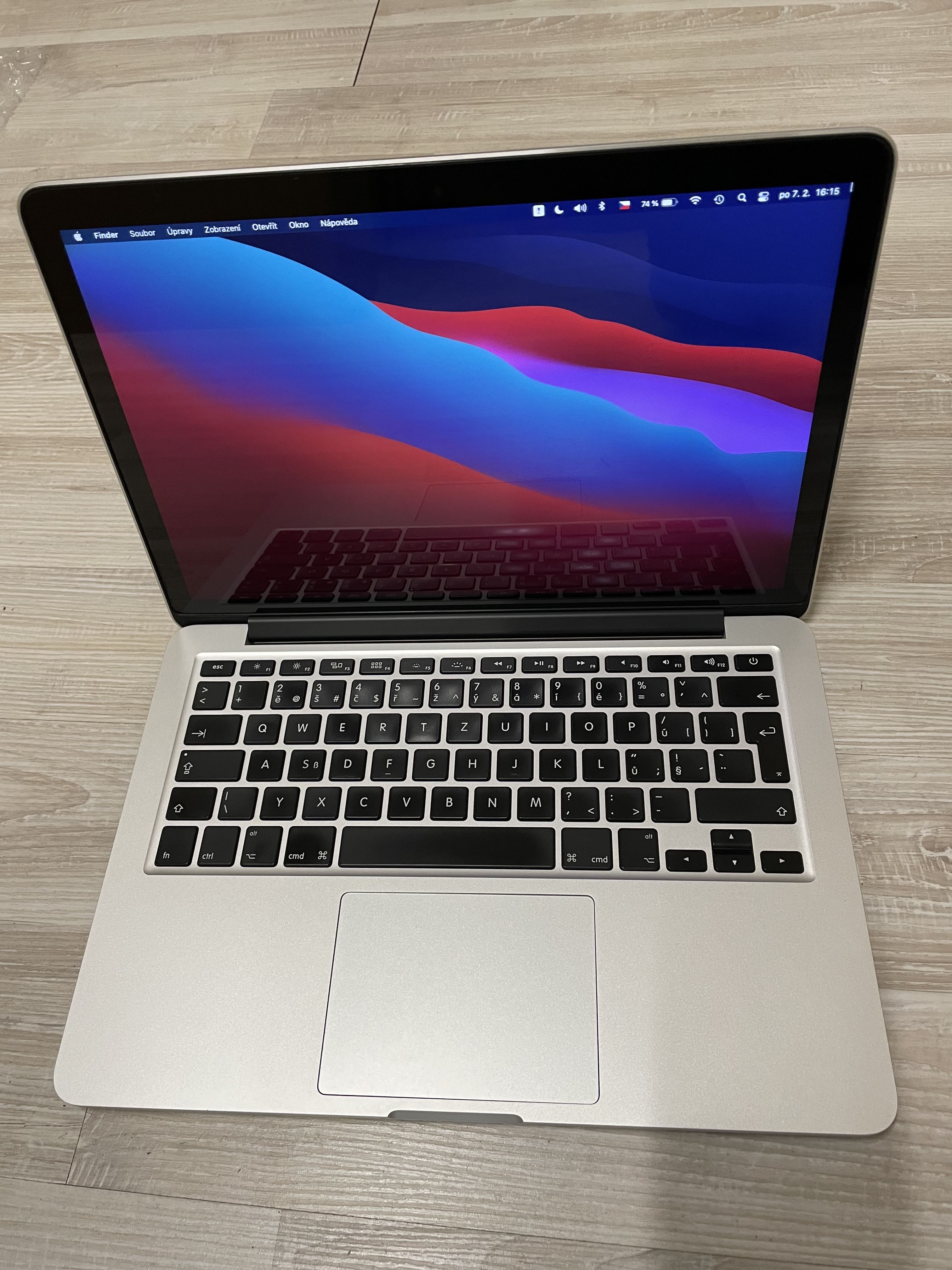 MacBook Pro 11,1, procesor i5 2,4 Ghz, 8GB DDR3, 256 GB SSD, grafika Intel Iris, Wifi 2,4 a 5 GHz 802.11 a/b/g/n/ac, BT 4.2 HDMI, 2x Thunderbolt 2, 2x USB3, čtečka karet SD, model A1502, late 2013. Mac OS Big Sur.