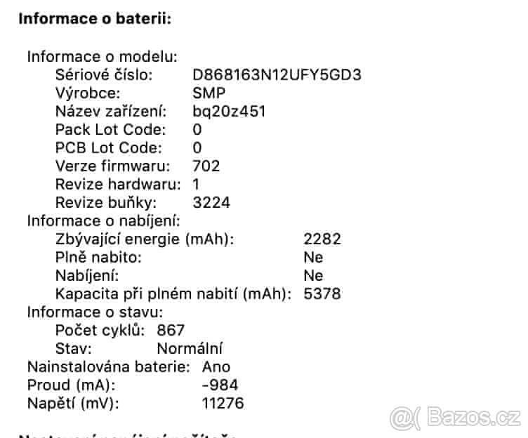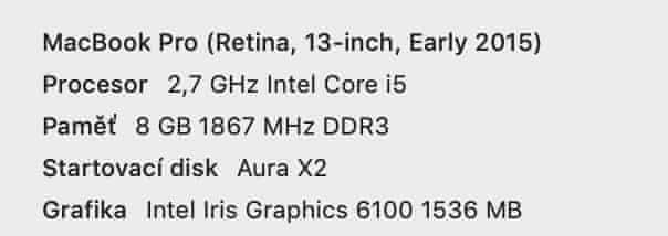Prodám macbook pro z roku 2015. Původně, měl ssd jen 128 GB, nyní má nový 1 TB SSD AURA X2 (v případě zájmu mám i původní 128 GB disk). Při výměně disku se měnila termo pasta u CPU. Baterie má 867 cyklů. Je to poslední model co má použitelnou konektivitu (2x usb, čtečka karet, hdmi, 2x thundebold, headphone jack).