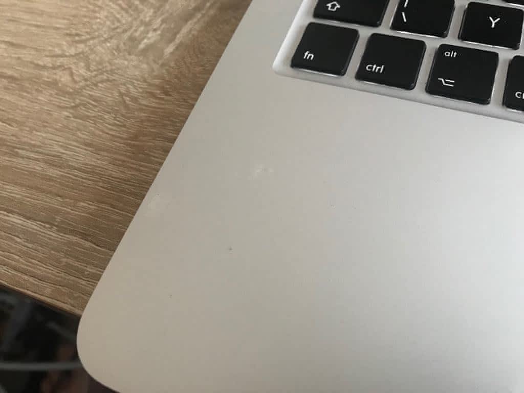 Jediná vada, na levé straně u touchoadu je asi 3mm ošoupaný hliník, ne promáčklina, spíše ošoupané od řemínku hodinek viz foto.
