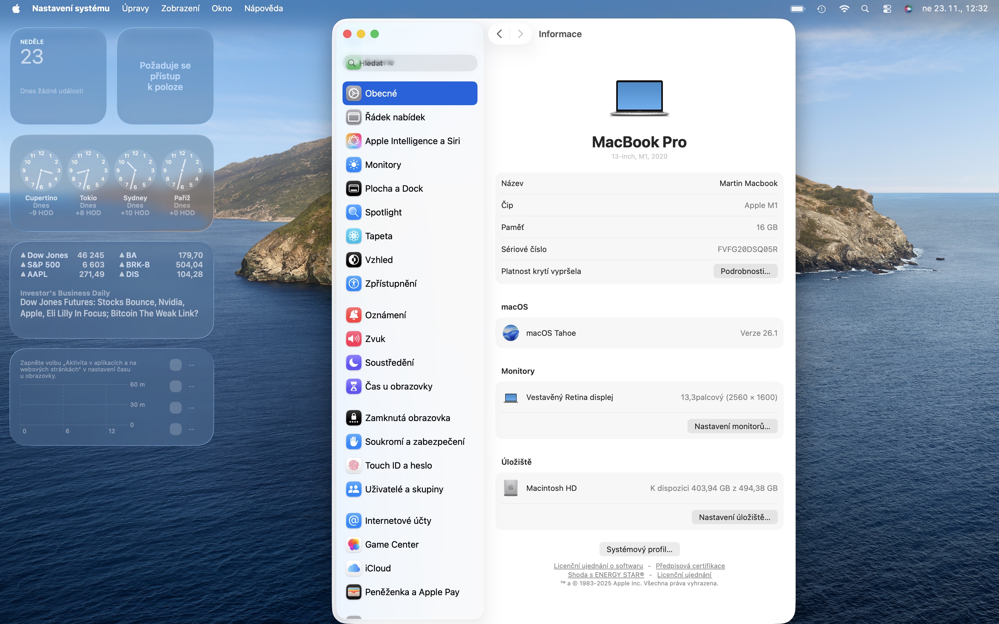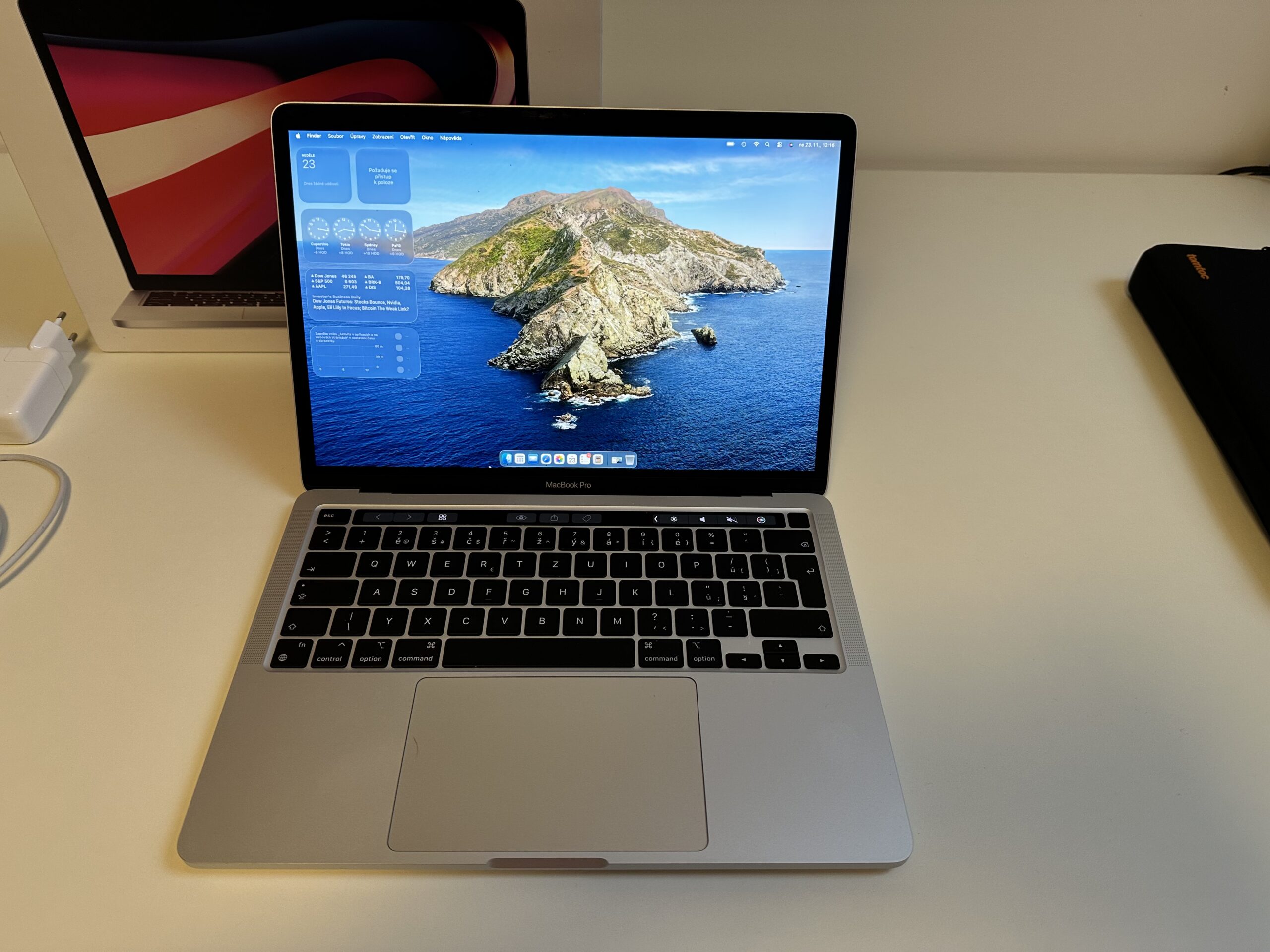 Prodám MacBook Pro M1, 13 palců, 16 GB sdílené paměti, 512 GB disk. V pěkném stavu, jen velmi drobné známky používání. Stav baterie 95%. Součástí nabíječka s kabelem, pouzdro tomtoc (https://www.alza.cz/tomtoc-sleeve-kit-13-macbook-pro-air-cerna-d7661636.htm?o=1) a originální krabice.