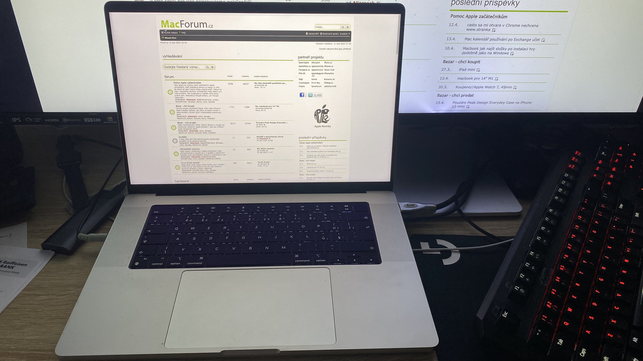 Prodám MacBook PRO M1 Pro,16,2" Liquid Retina XDR lesklý 3456 × 2234 px, 120 Hz, RAM 16GB, Apple M1 PRO 16jádrová GPU, SSD 1000GB, podsvícená klávesnice, webkamera, USB-C, čtečka otisků prstů, WiFi 6